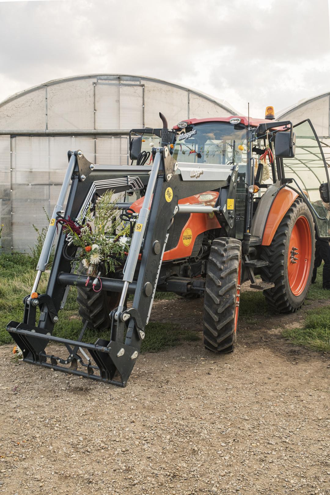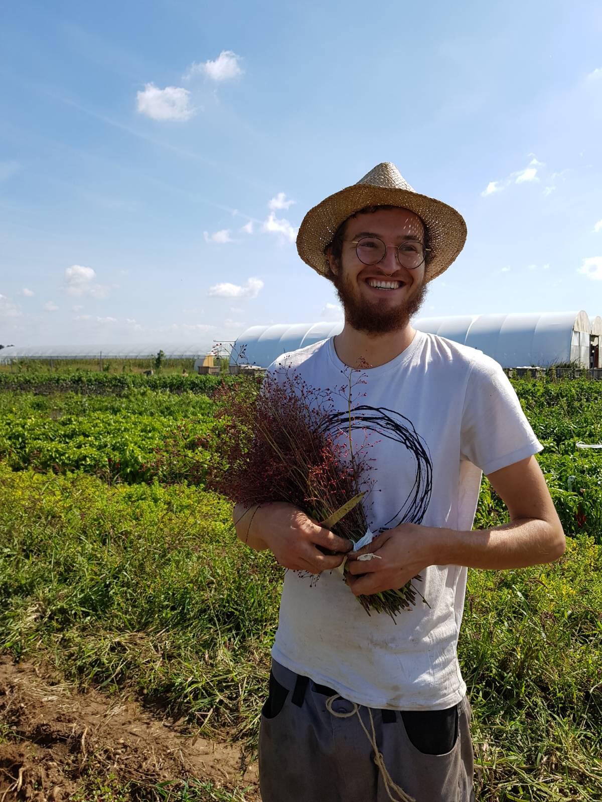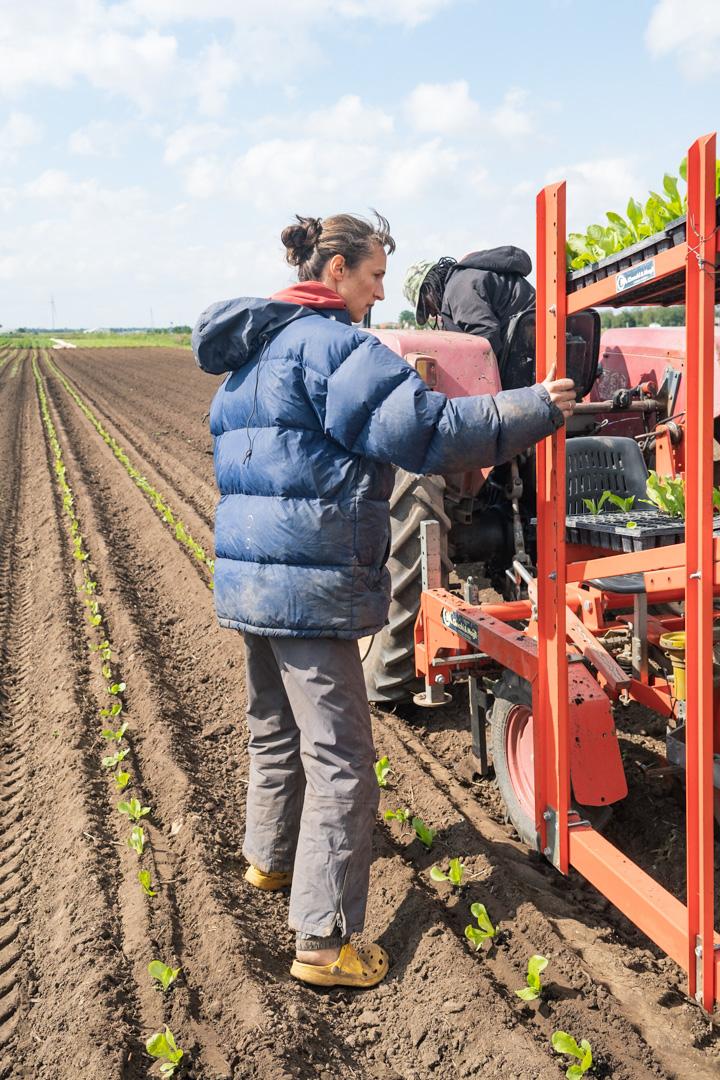 Luca mit der Sähmaschine. Bald steht hier der Schiebetunnel.