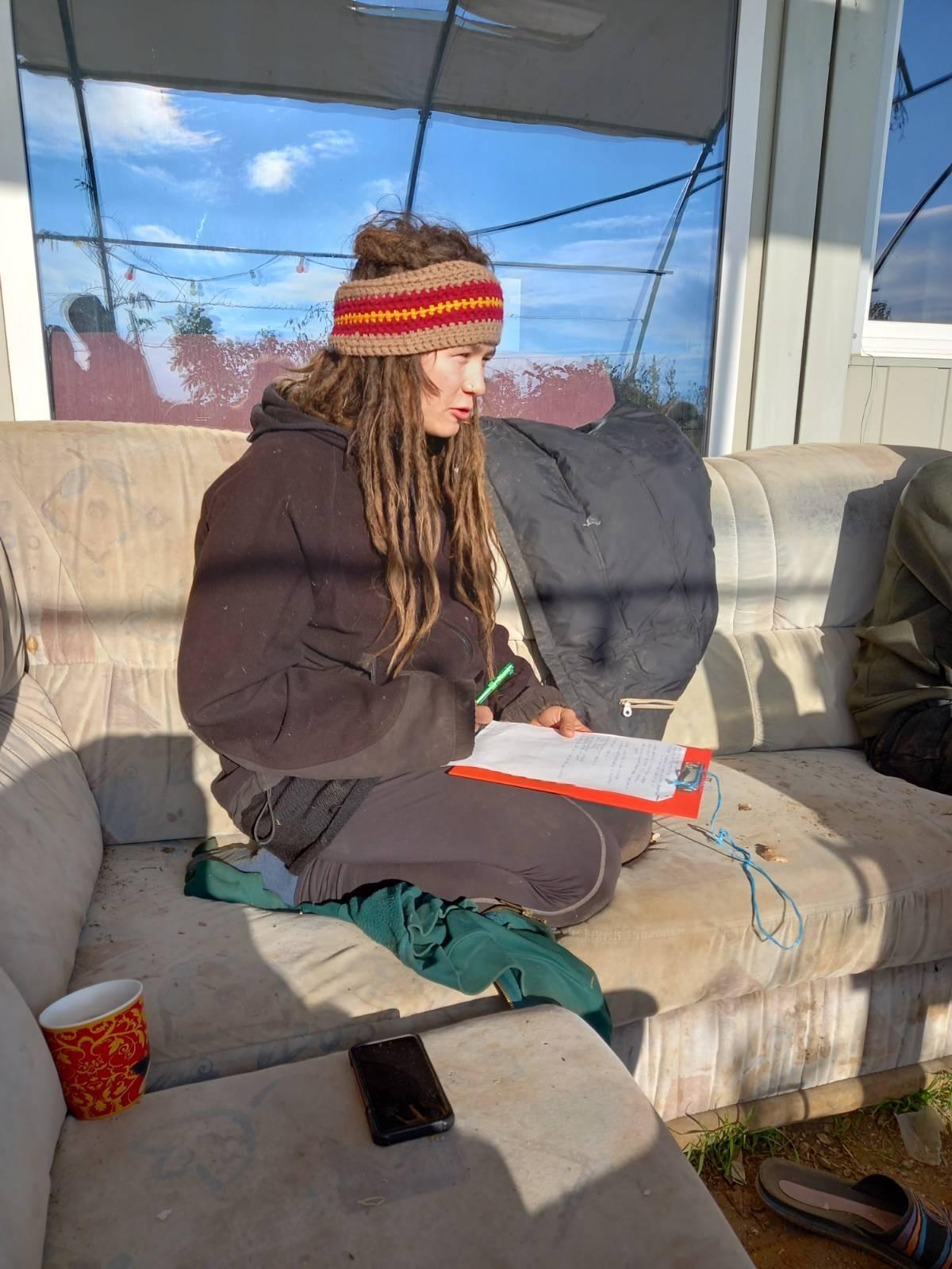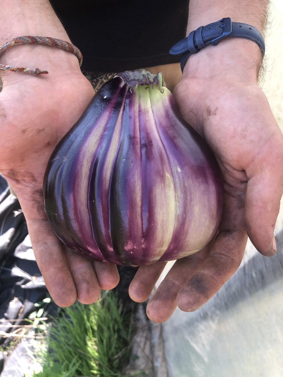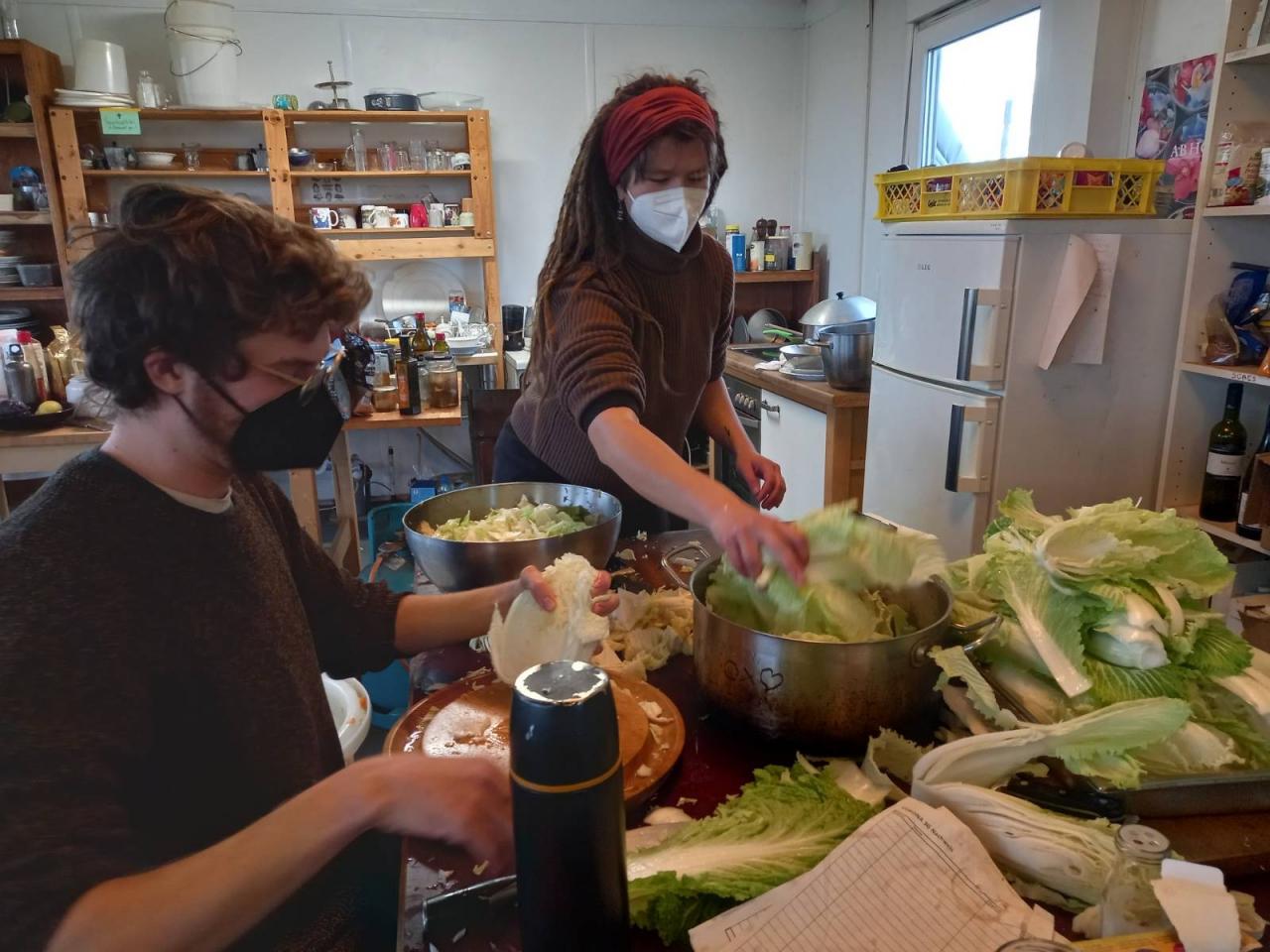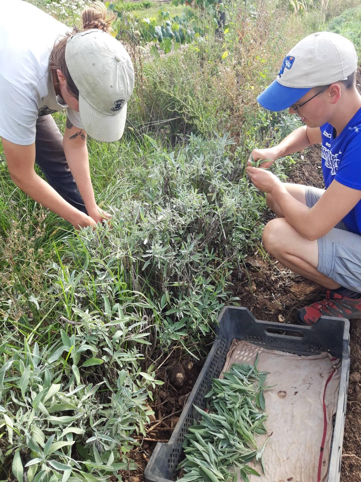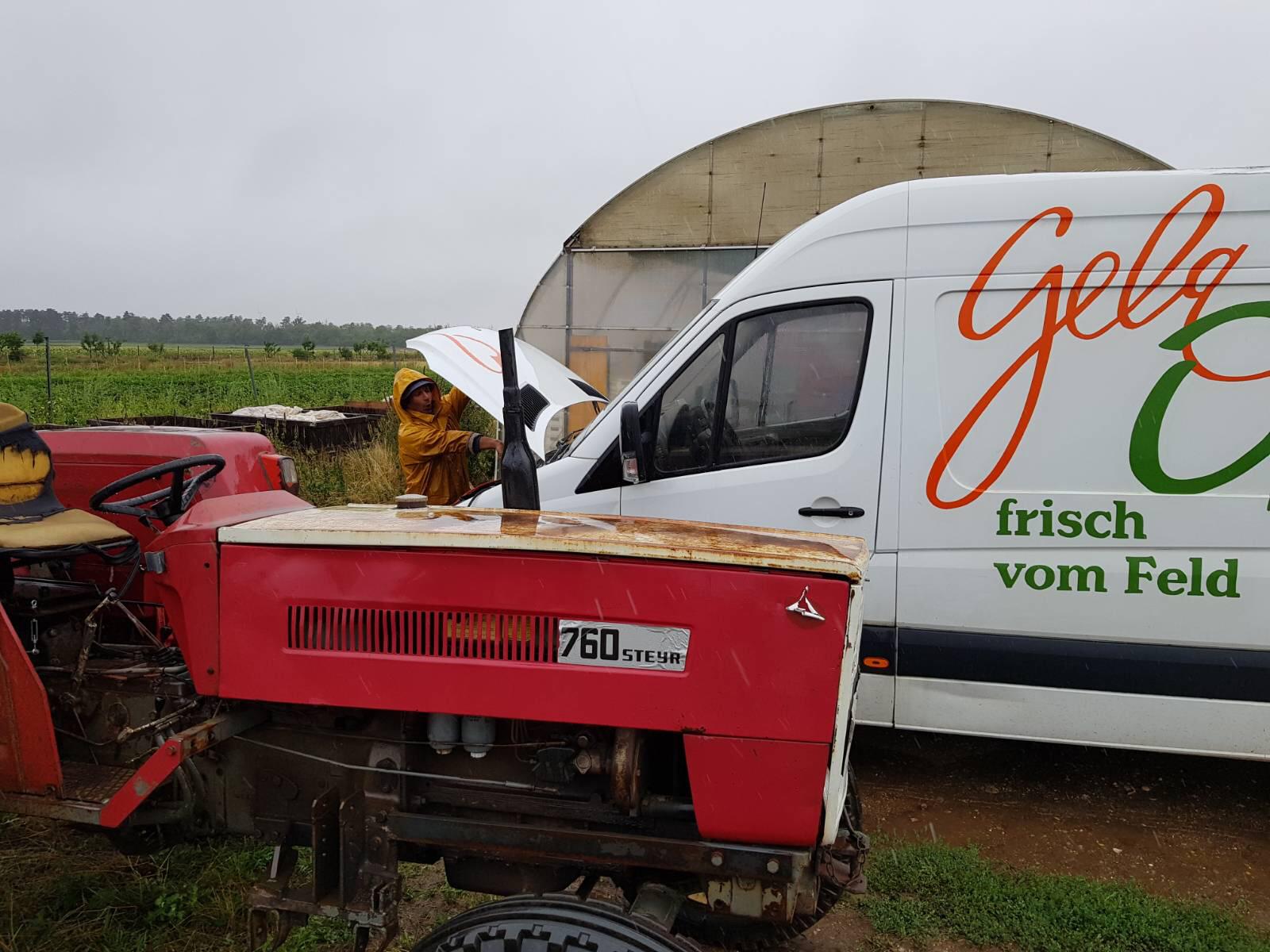 Hier zwei gut verpackte Mitglieder des Donnerstags-Ernte-Teams, das auch an regnerischen Feiertagen für uns da ist. Danke!