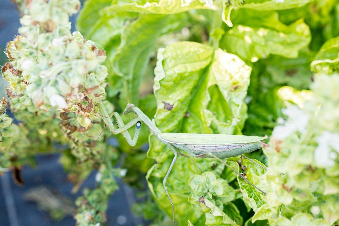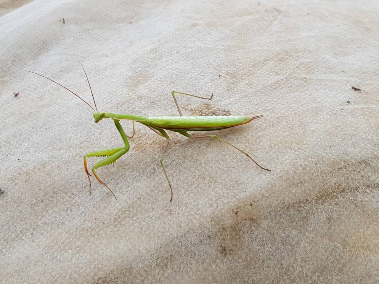 Es gibt grad viele Gottesanbeterinnen am Hof. Hier ein Weibchen.