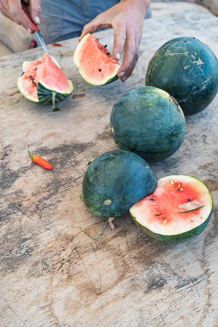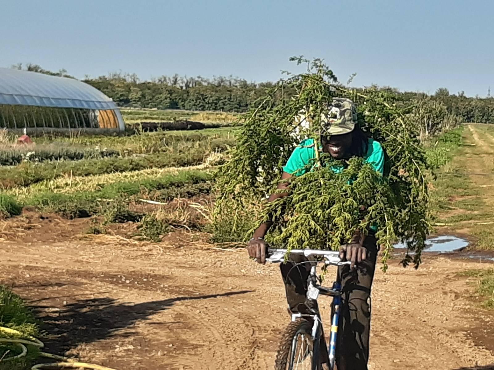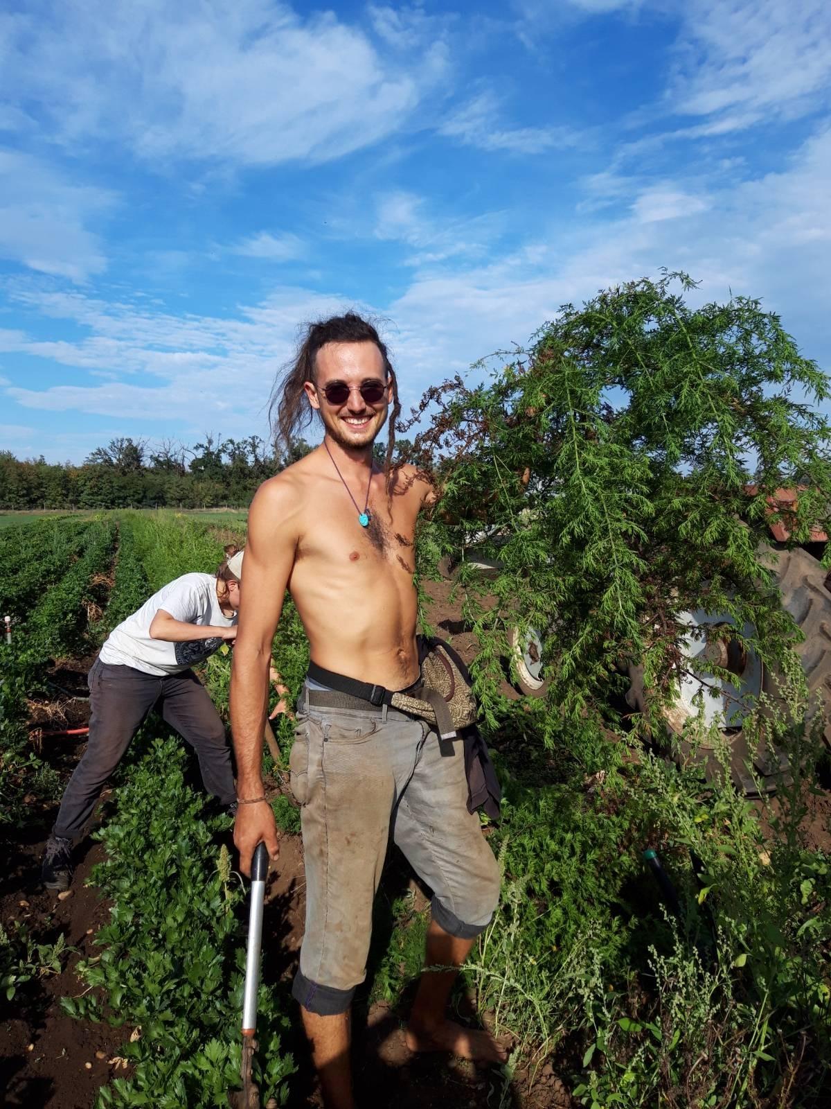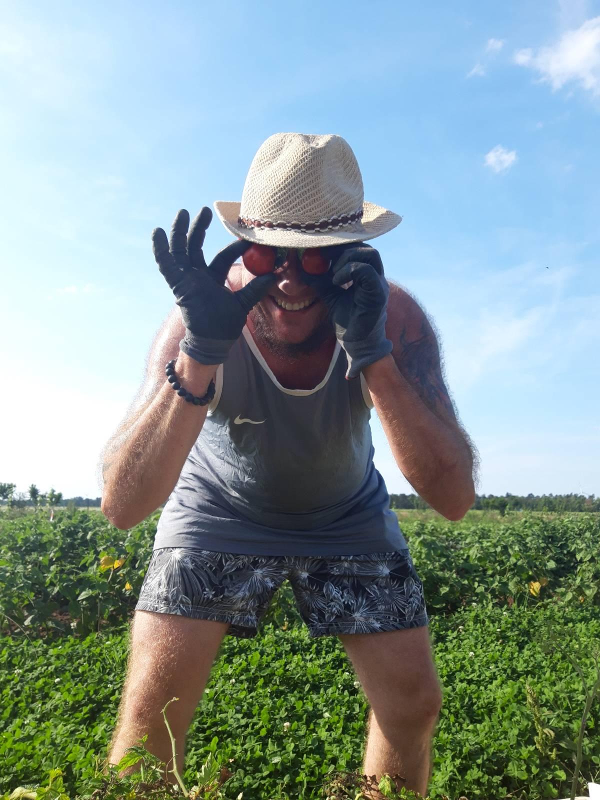 Markus demonstriert gekonnt eine der diversen Möglichkeiten Gemüse zu ernten.