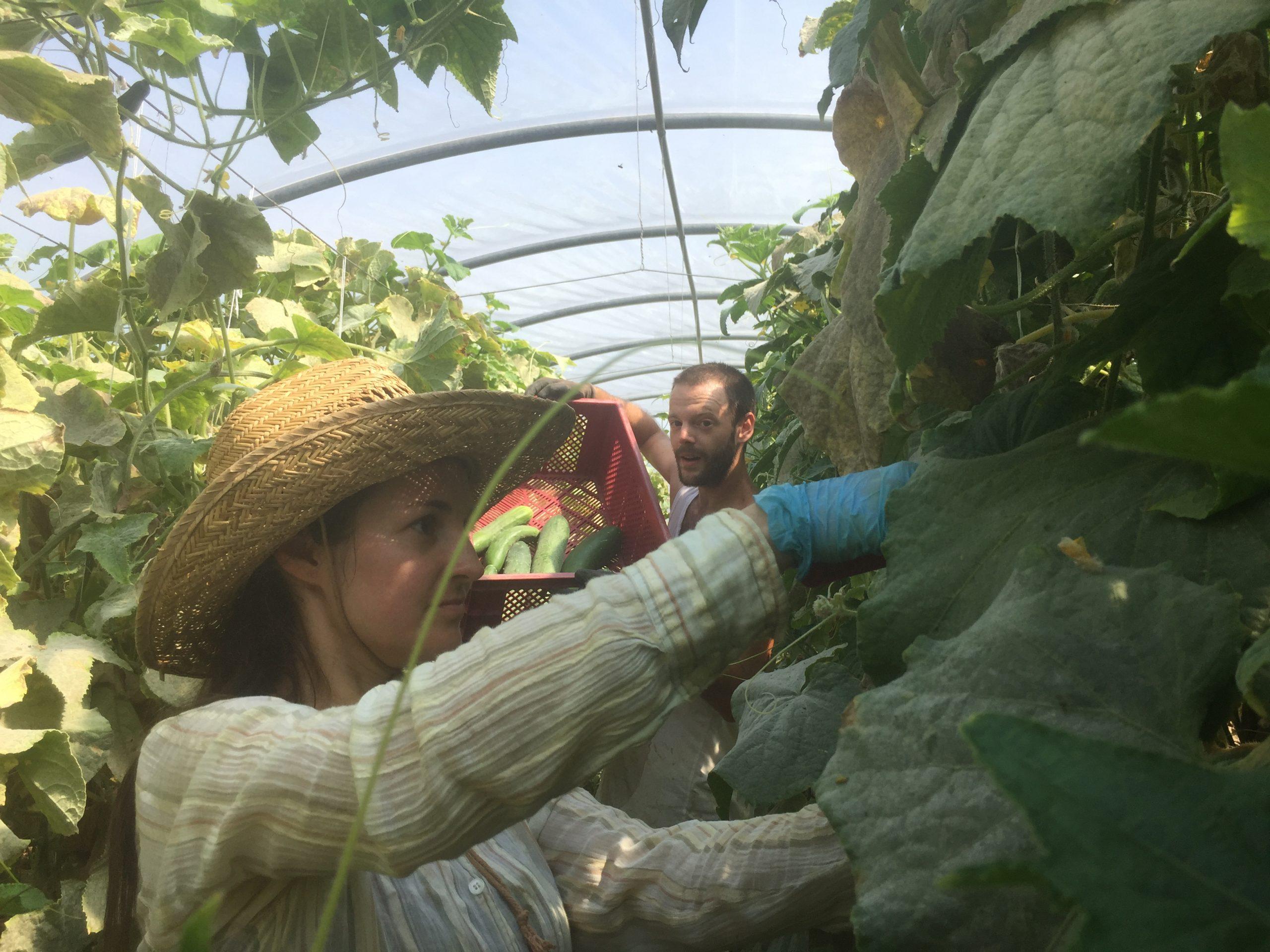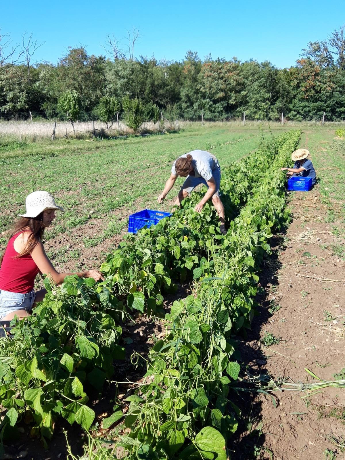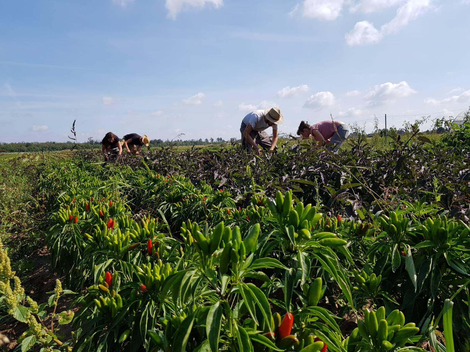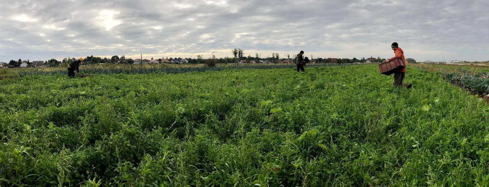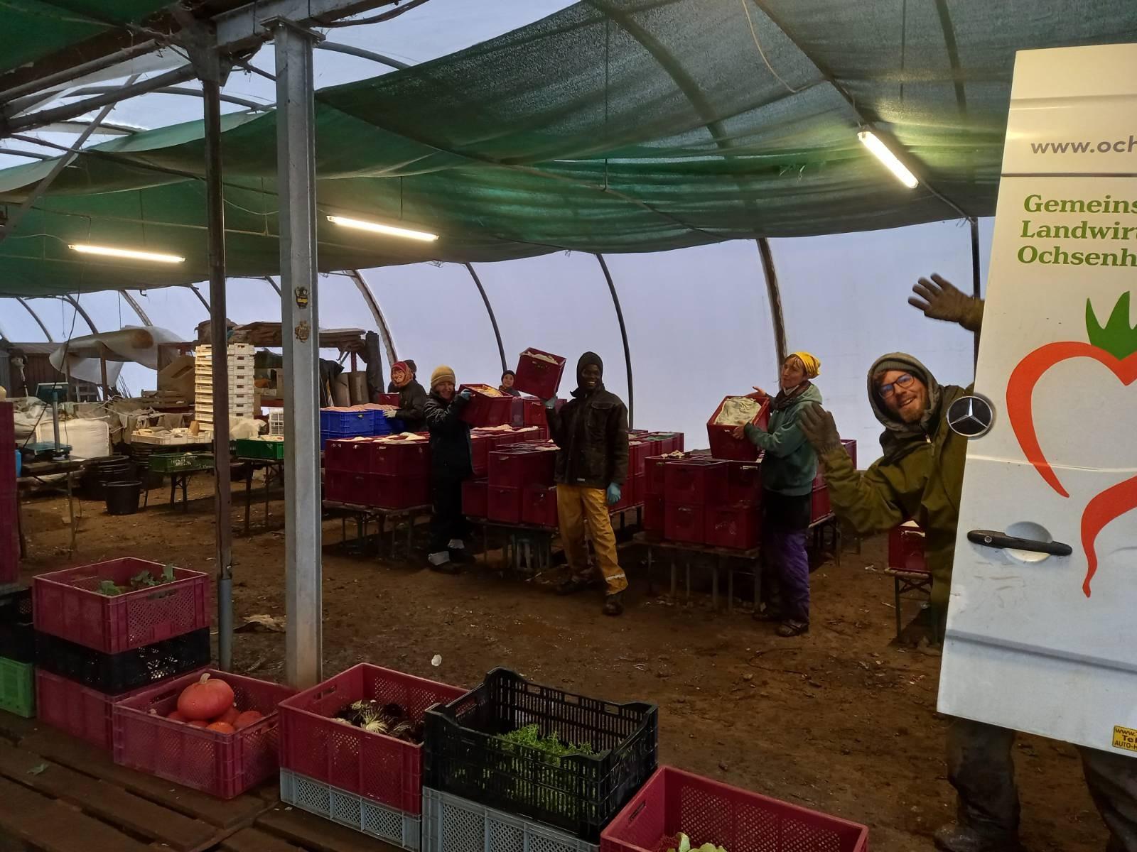 Das Ernte-Team heute beim Vogerlsalatpflücken.