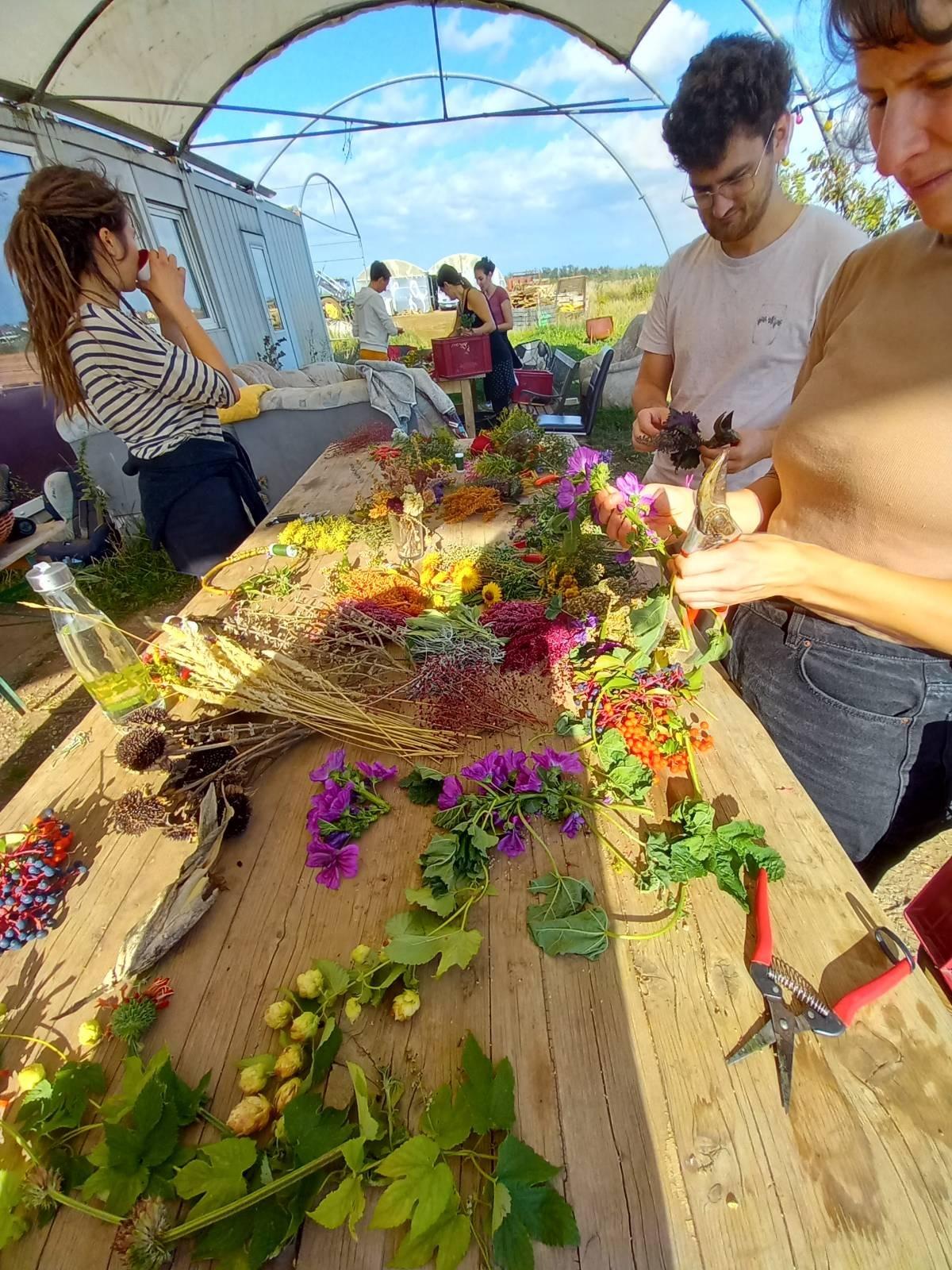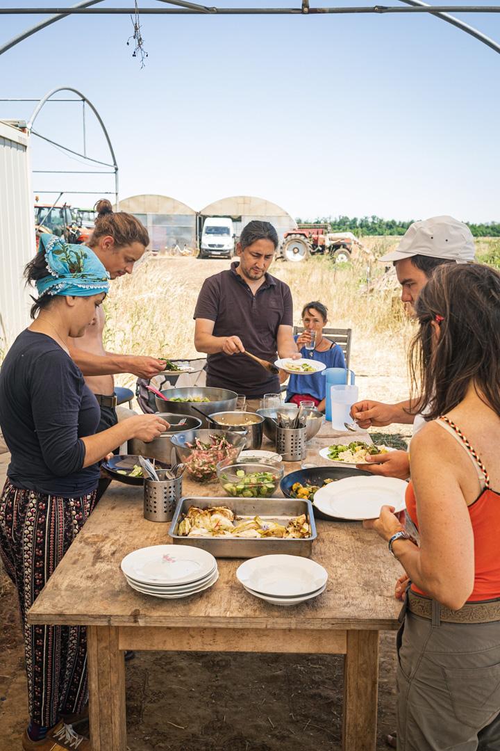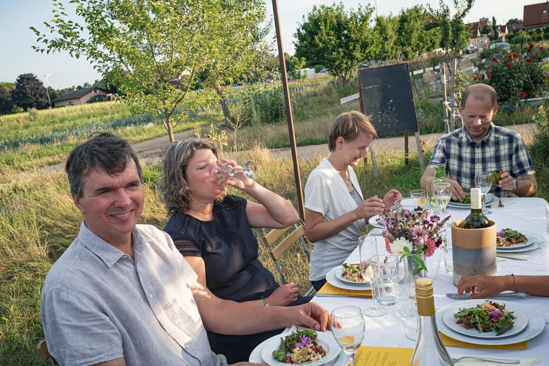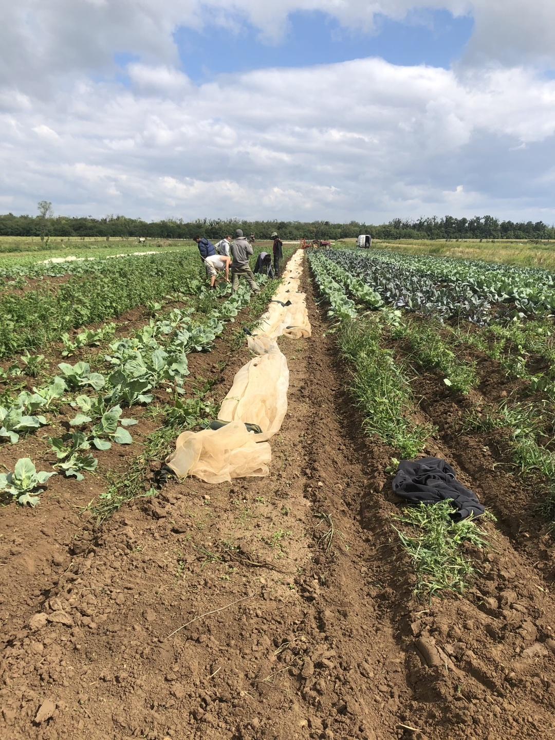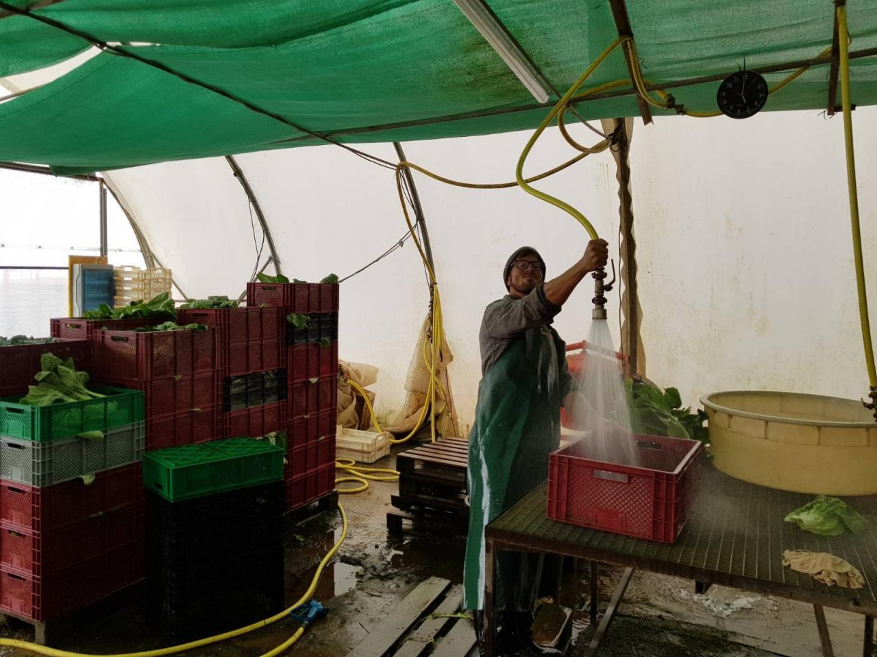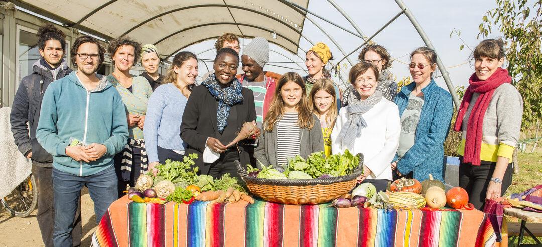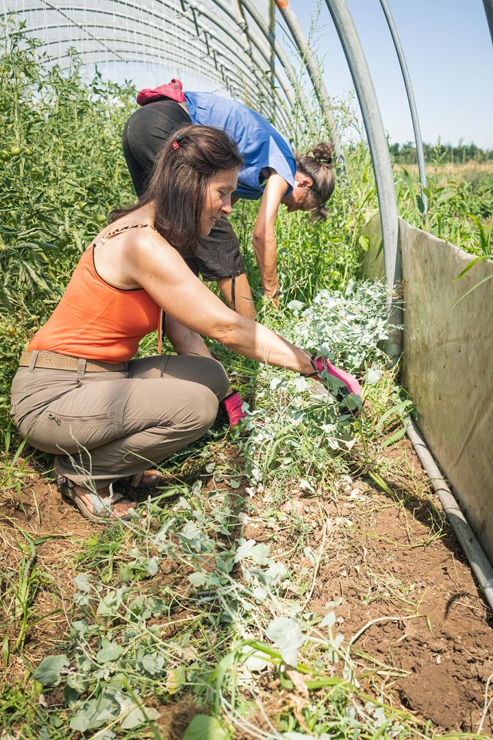 Das Ernte-Team heute beim Vogerlsalatpflücken.