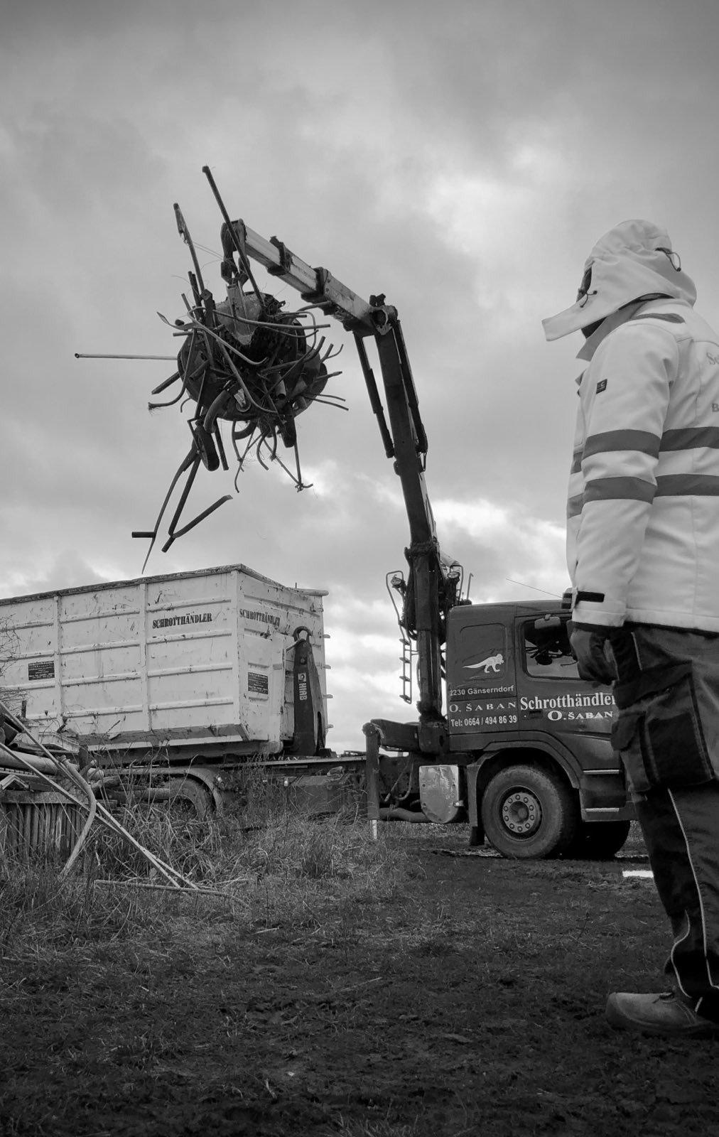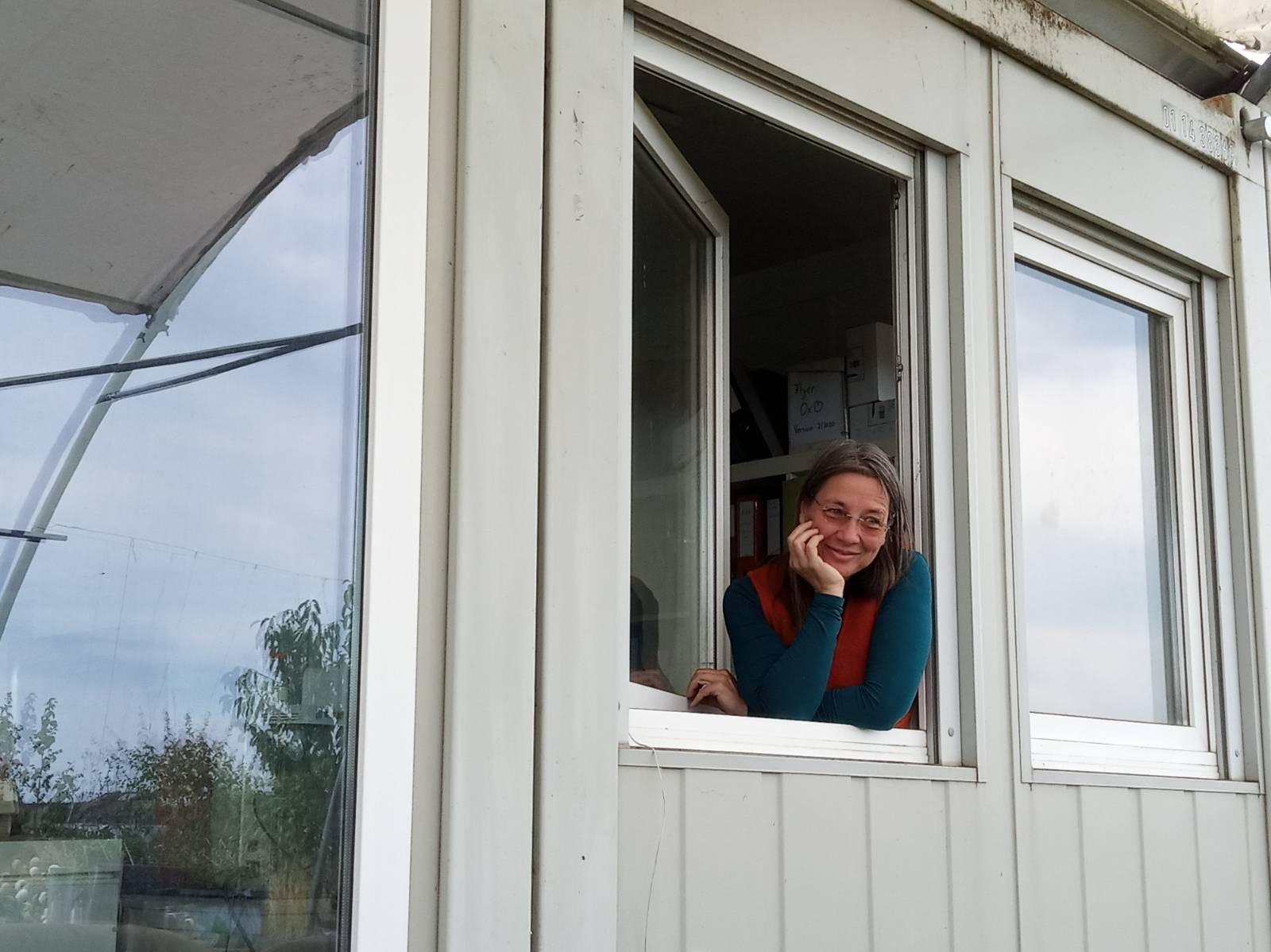 Rosa beim Anlegen eines Staudenbeets vorm Container