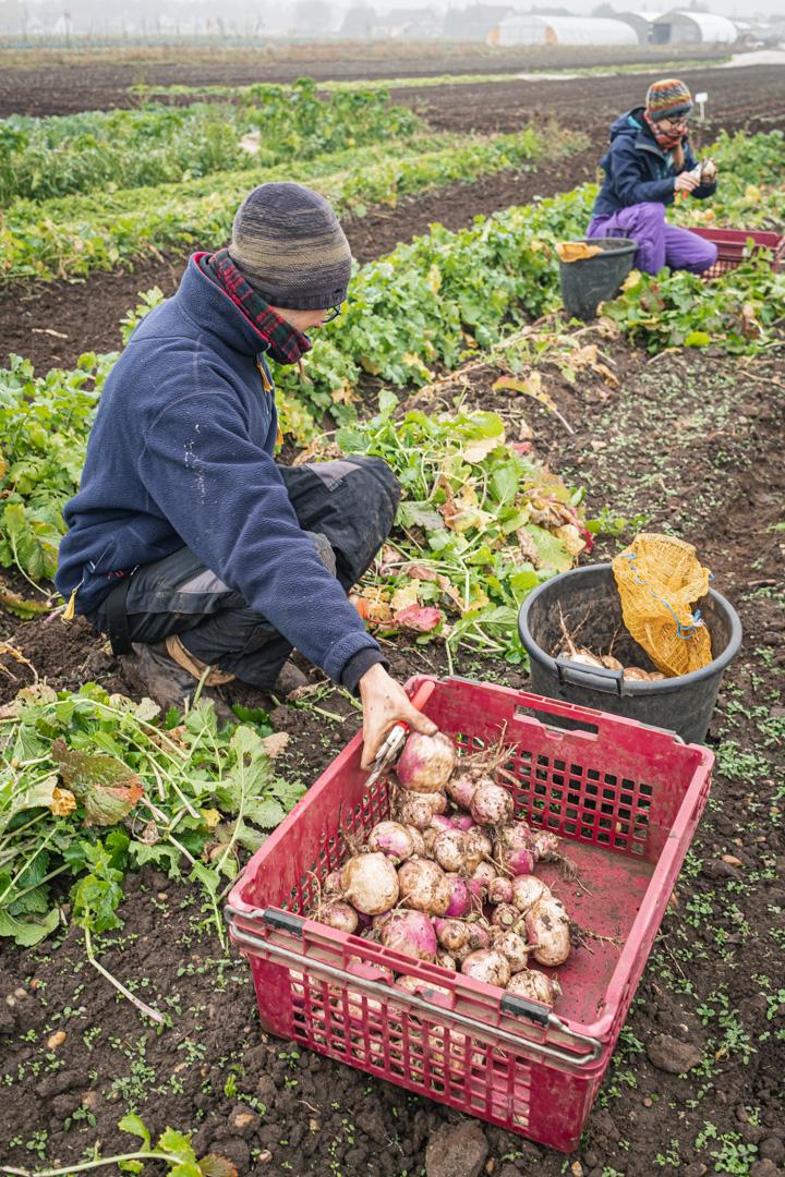 Um diese Jahreszeit heißt es schnell ernten bevor der Boden wieder gefriert.