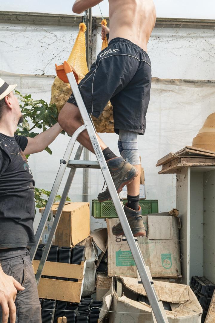 Trotzdem waren es schlussendlich über den Tag verteilt ca. 10 tapfere Helfer*innen, die gemeinsam unser alle Knoblauch in Säcke gefüllt haben, damit er schön luftig hängend über den Winter kommt.
