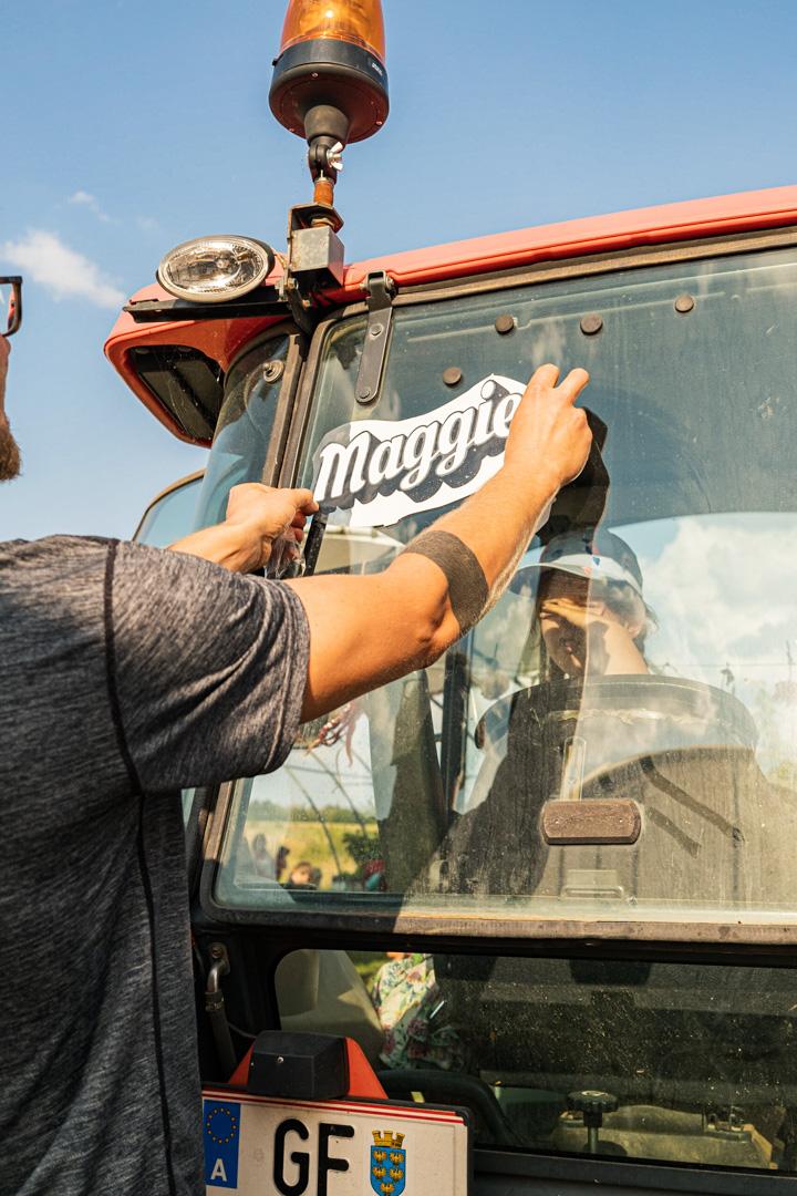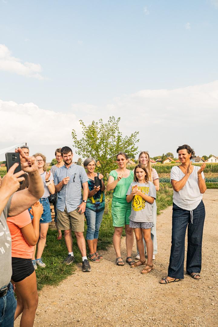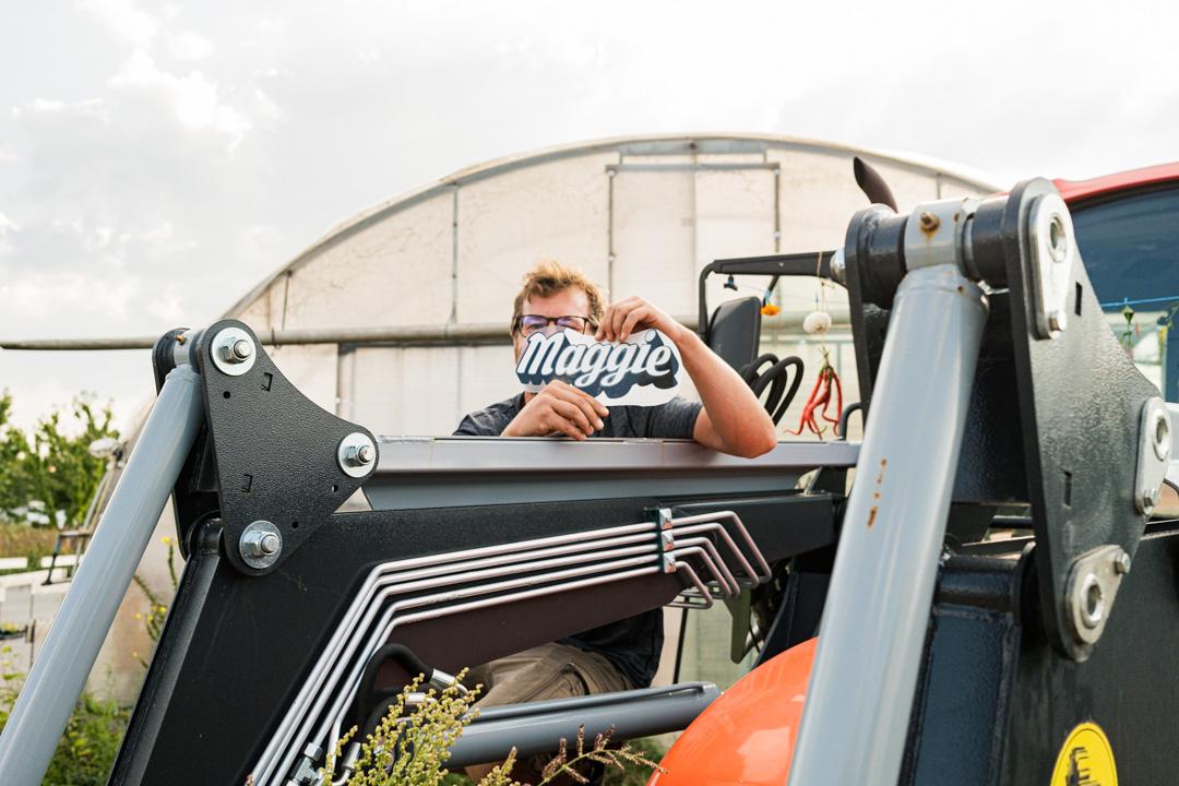 Dann wurde „Maggie“ offiziell getauft und trägt, dank Daniel, nun stolz diesen Namen auf der Scheibe. Danach gab’s einen Feldspaziergang von Luca, mit viel Details über Feld, Tunnel und Pflanzen.