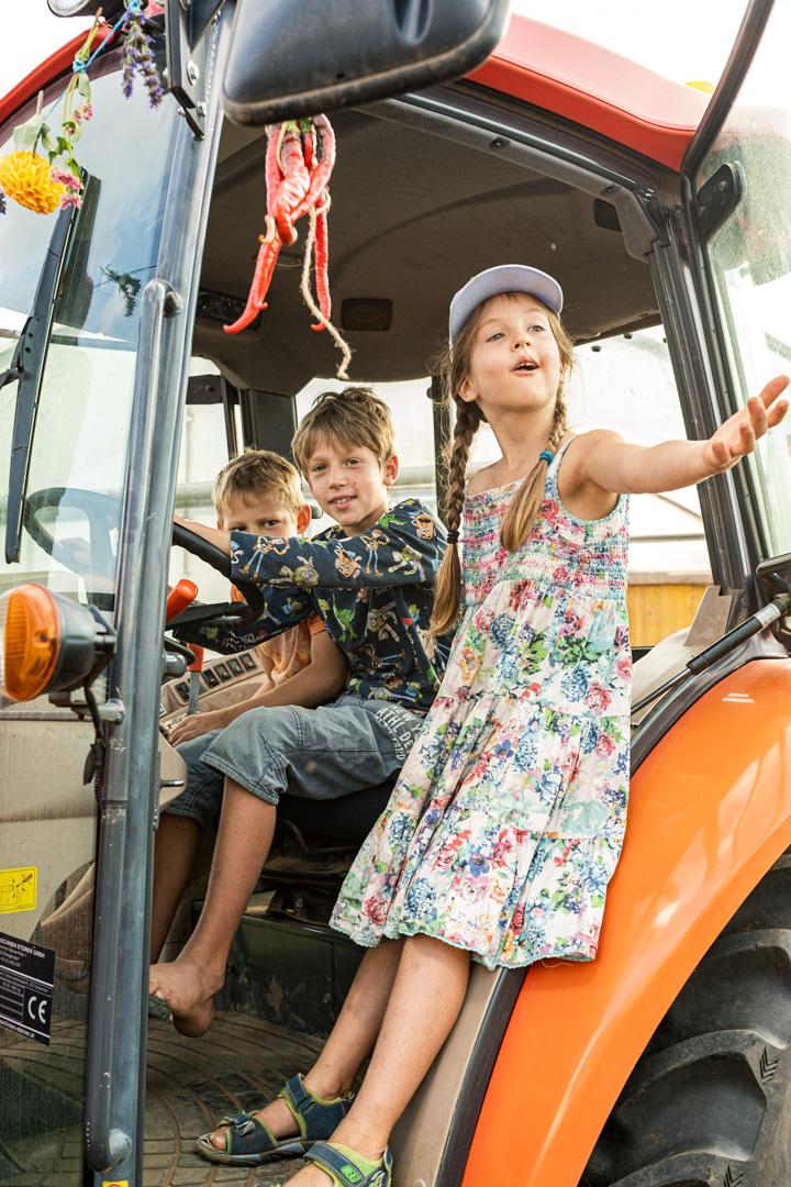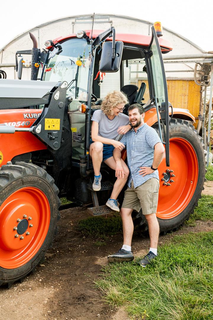 Nach einer kurzen Ansprache meinerseits erzählte uns Thomas vom Hof-Team über die Vorzüge der Arbeit mit dem neuen Traktor. Einige Monate ist sie schon im Einsatz. Setzen geht dank langsamem Kriechgang jetzt viel einfacher. Die Zwiebeln zum Beispiel, die wir gerade beim Hofaktionstag ernteten wurden schon alle mit Maggie gesetzt. Ausserdem ist sie stark genug um den Häufelpflug für die Dämme und das Hacken zu ziehen und macht das regelmäßig ohne ständig einzugehen, wie die alten Traktoren das gern gemacht haben.