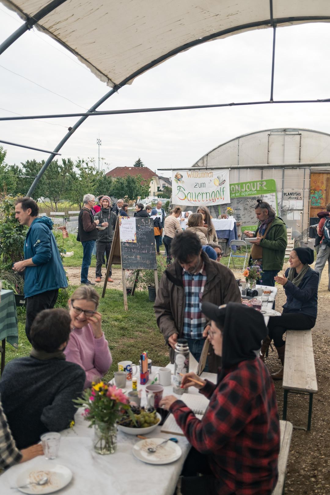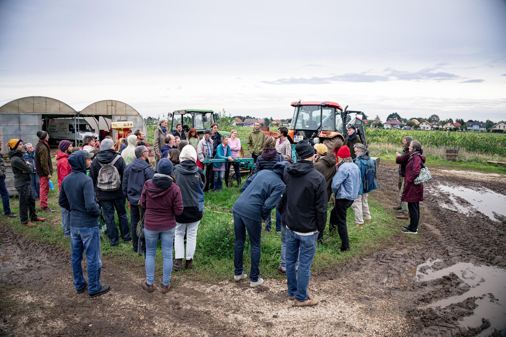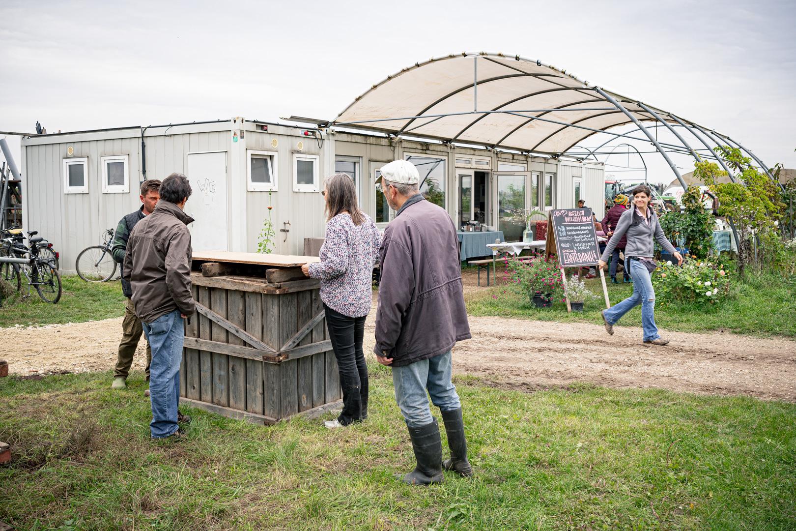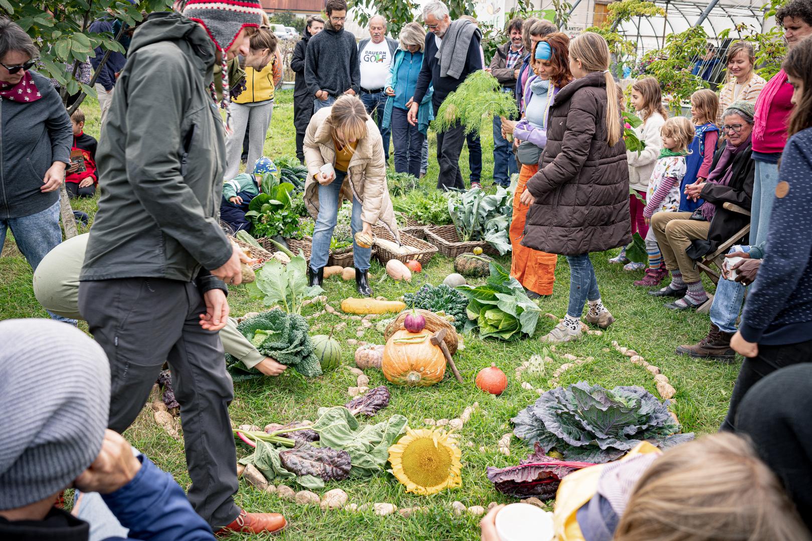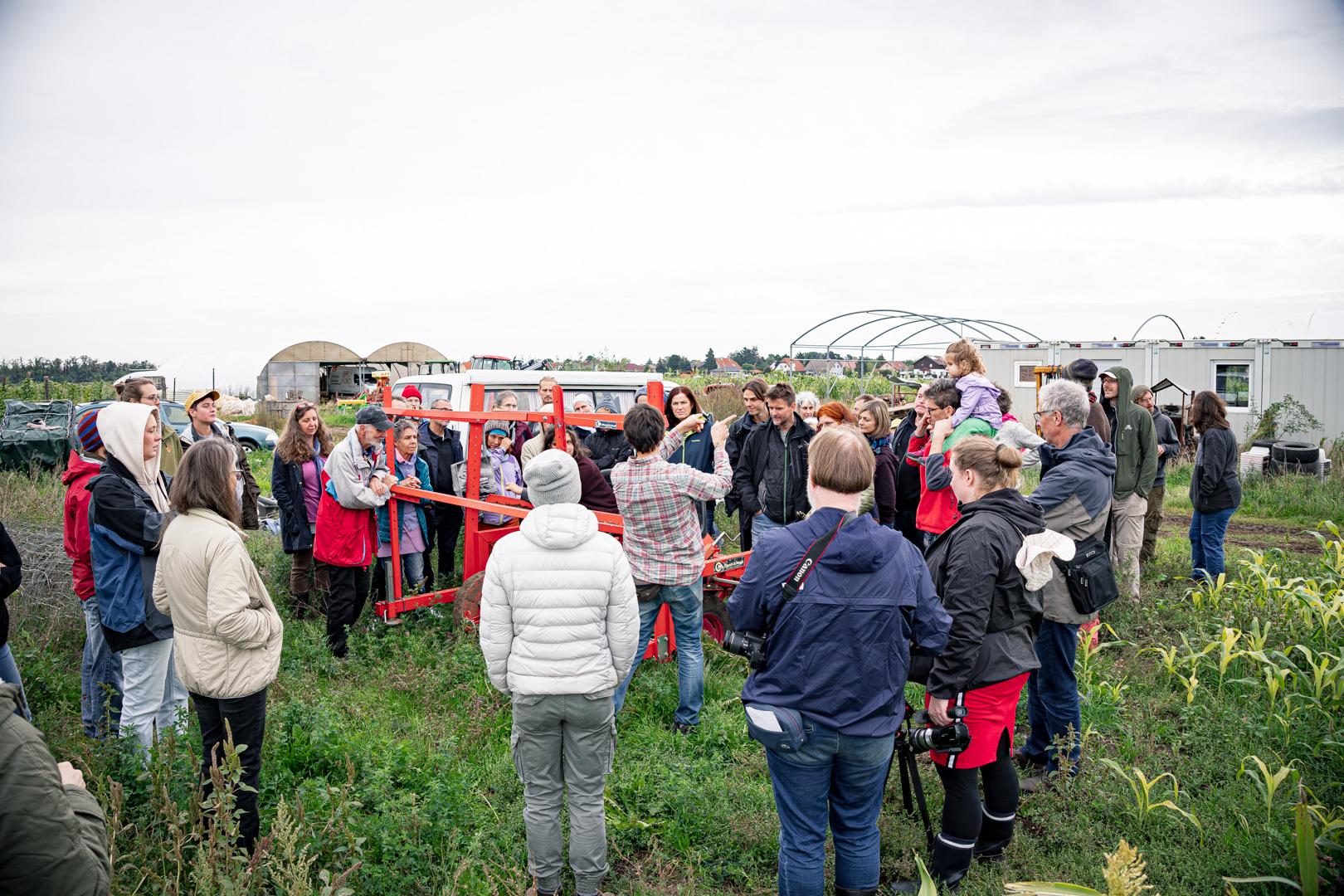 Nach dem gemeinsamen Gemüsemandala Legen zur Begrüßung gabs noch eine sehr emotionale aber auch wunderschöne Dankesrunde. Nach einer Stärkung vom Buffet und einem Abstecher zum Bauerngolf konnten Interessierte bei der Hofführung von Rosa, Tobi und Thomas Details und Einblicke in den Gemüseanbau bei GeLa bekommen.
