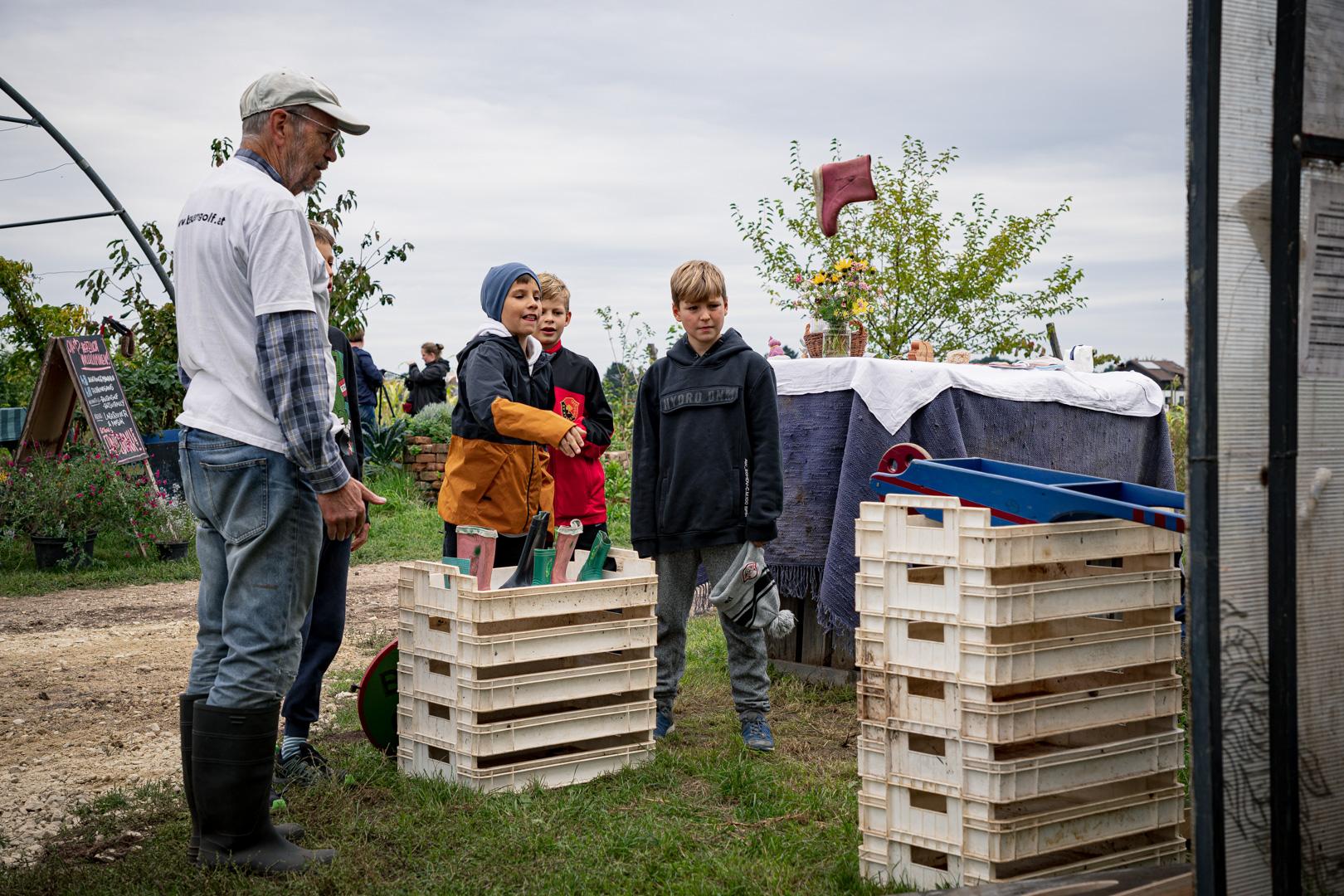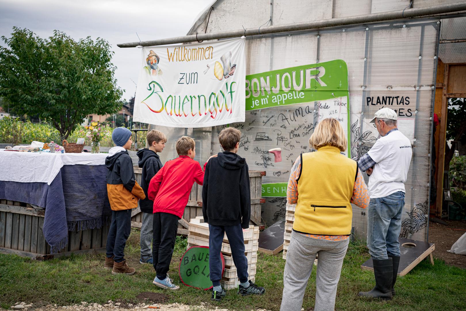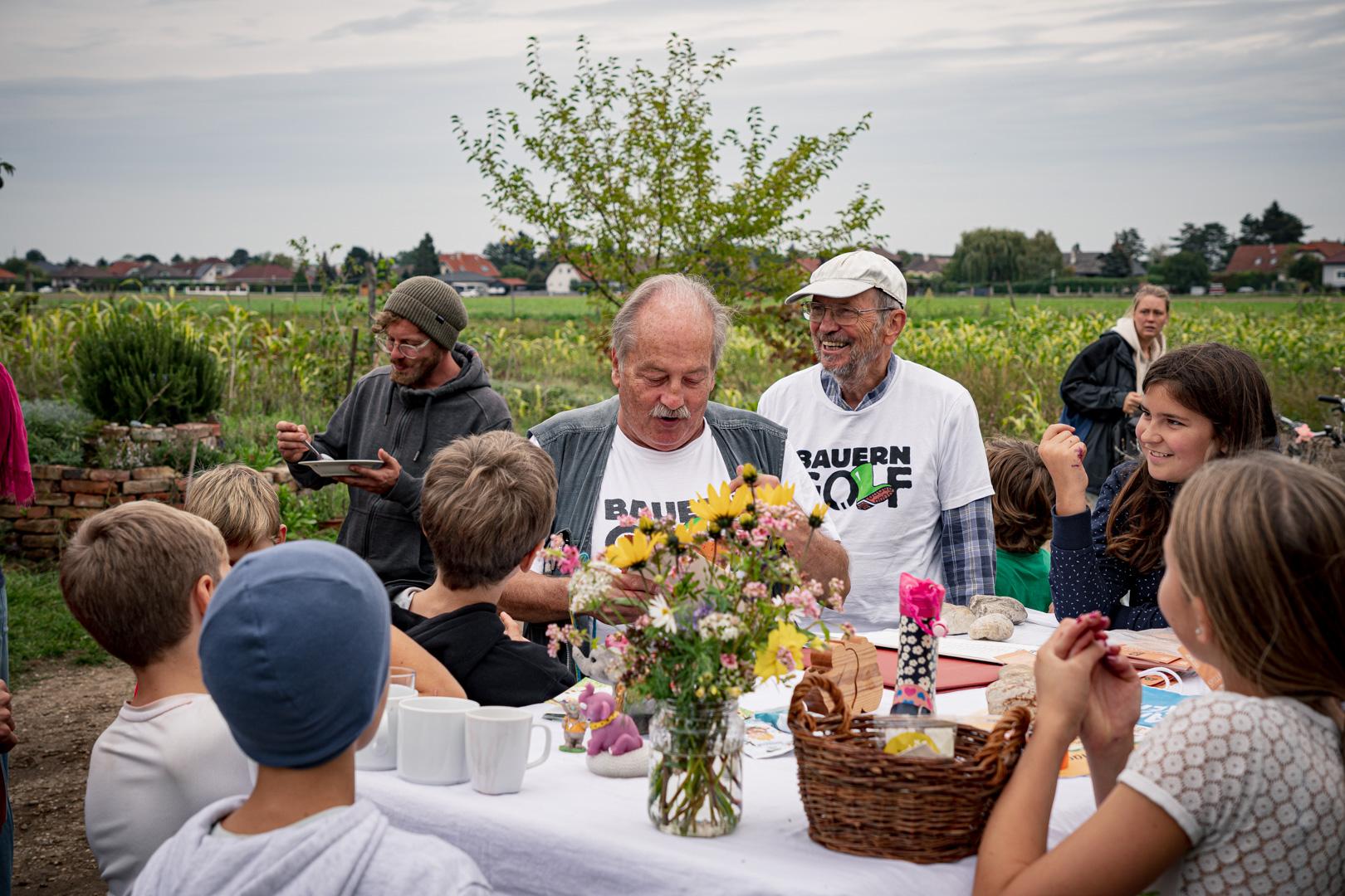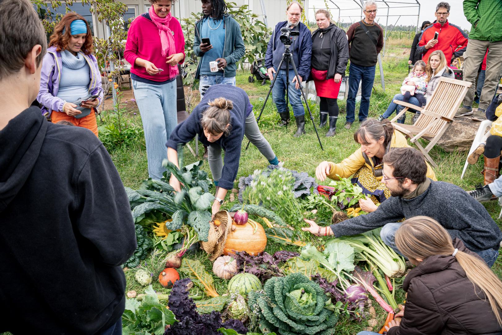 Nach dem gemeinsamen Gemüsemandala Legen zur Begrüßung gabs noch eine sehr emotionale aber auch wunderschöne Dankesrunde. Nach einer Stärkung vom Buffet und einem Abstecher zum Bauerngolf konnten Interessierte bei der Hofführung von Rosa, Tobi und Thomas Details und Einblicke in den Gemüseanbau bei GeLa bekommen.
