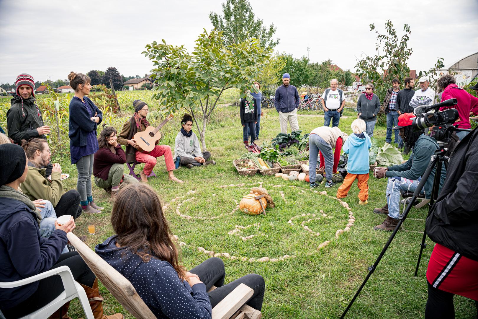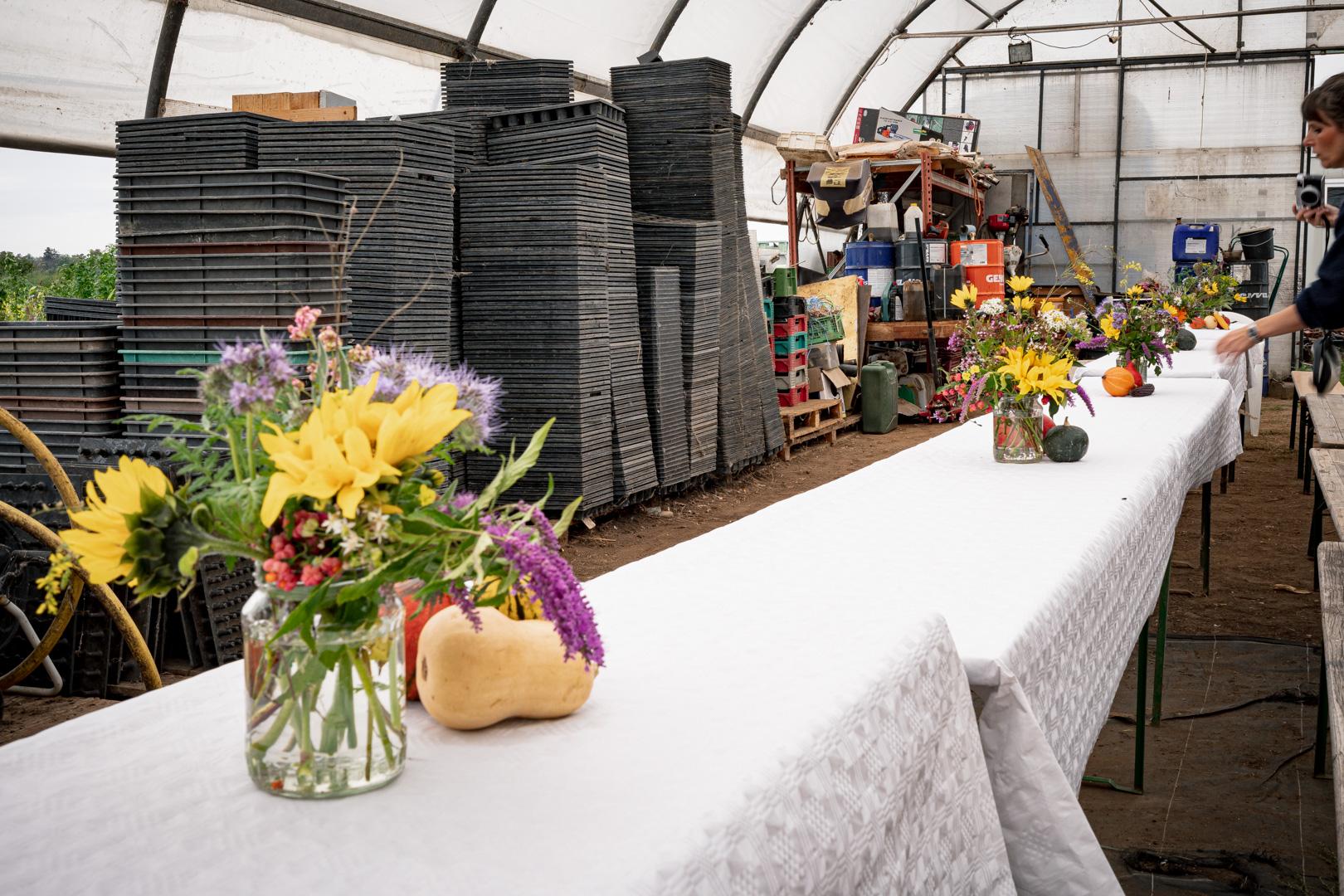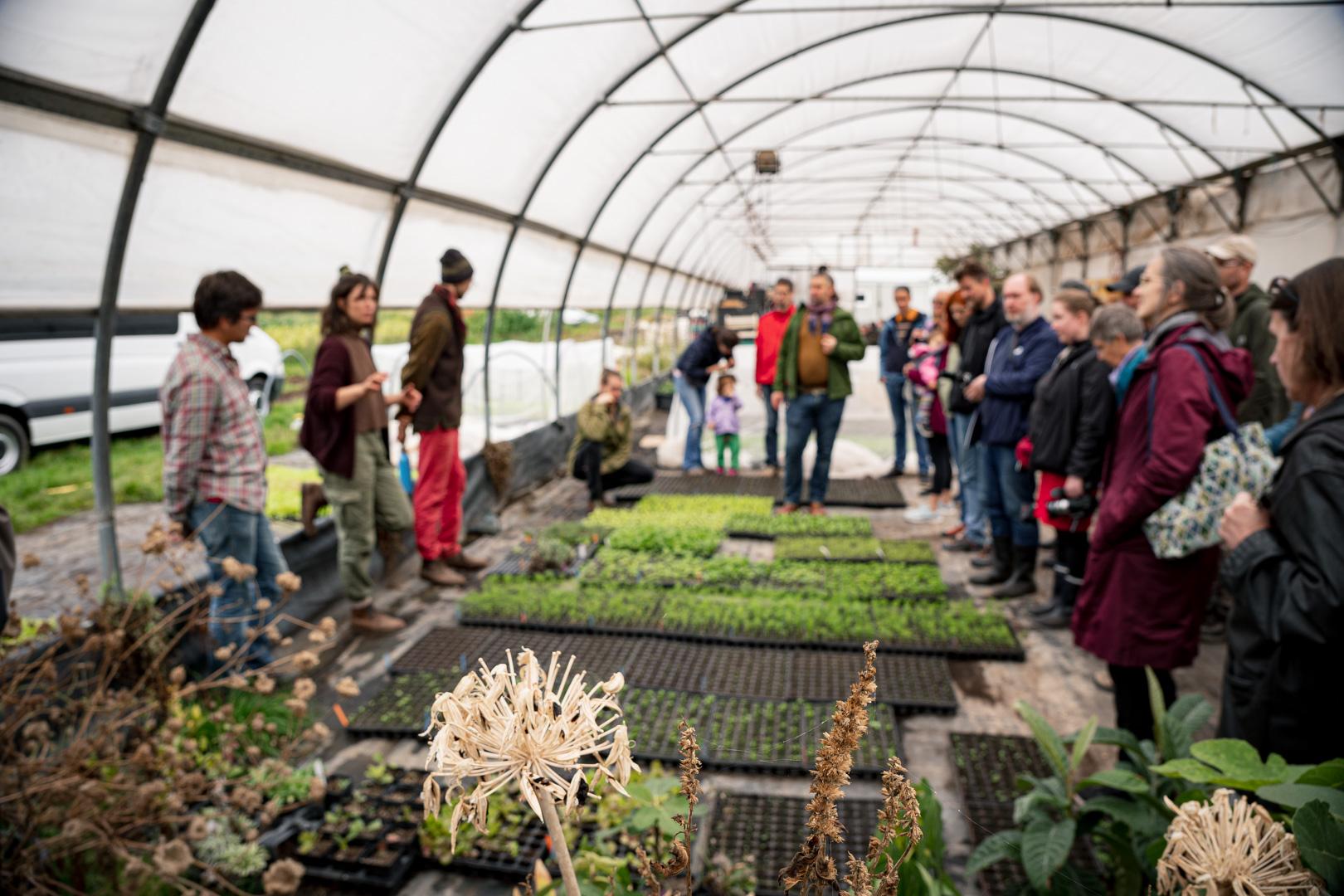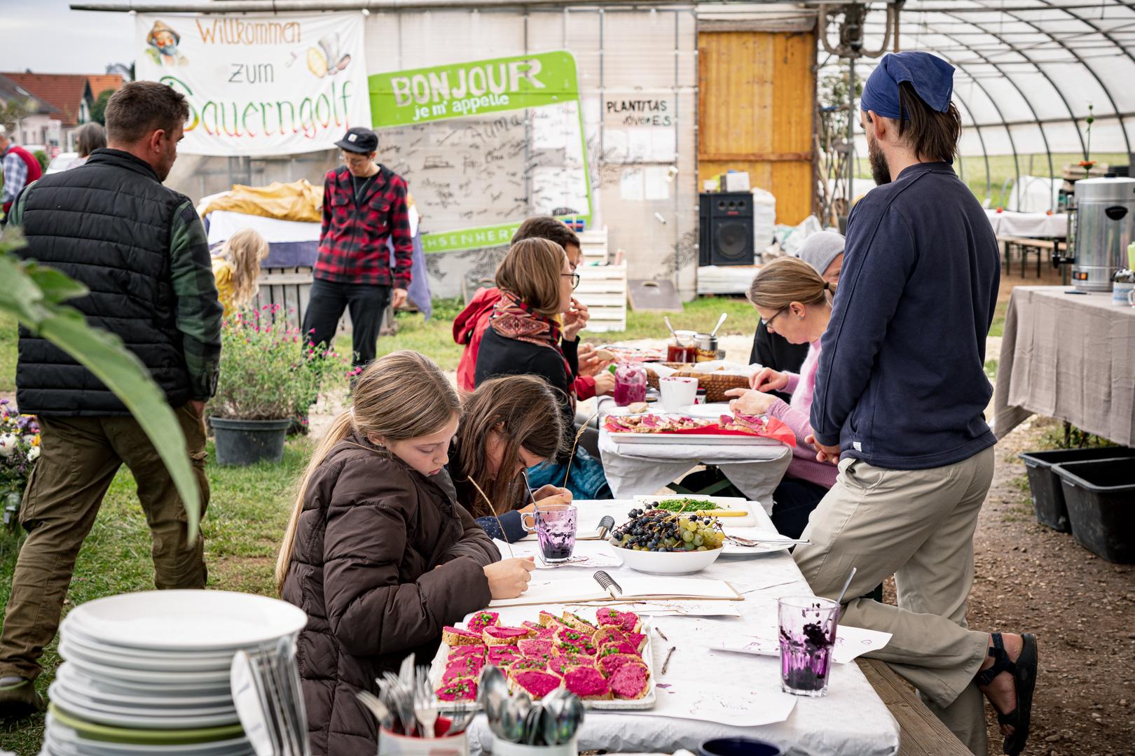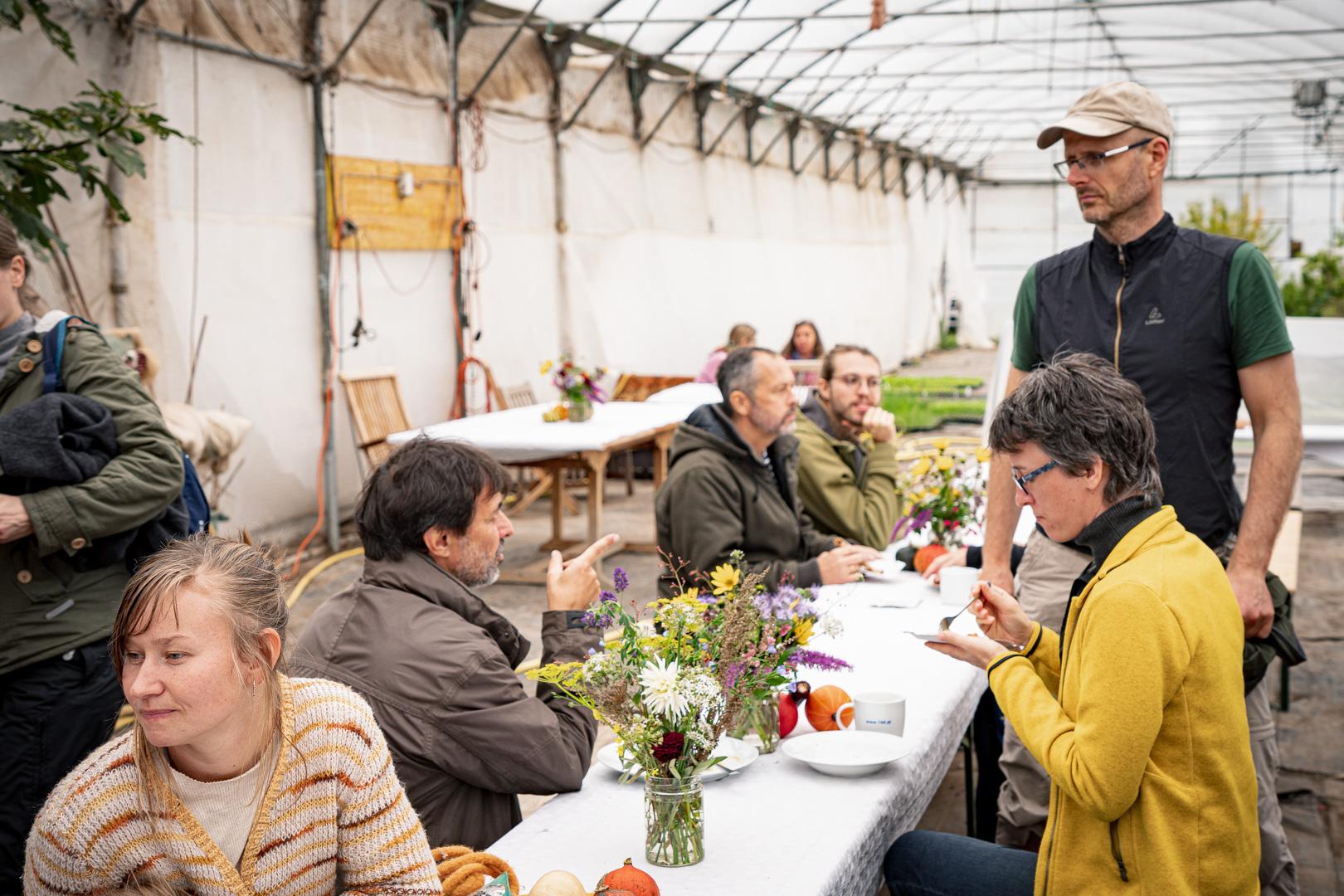 Nach dem gemeinsamen Gemüsemandala Legen zur Begrüßung gabs noch eine sehr emotionale aber auch wunderschöne Dankesrunde. Nach einer Stärkung vom Buffet und einem Abstecher zum Bauerngolf konnten Interessierte bei der Hofführung von Rosa, Tobi und Thomas Details und Einblicke in den Gemüseanbau bei GeLa bekommen.