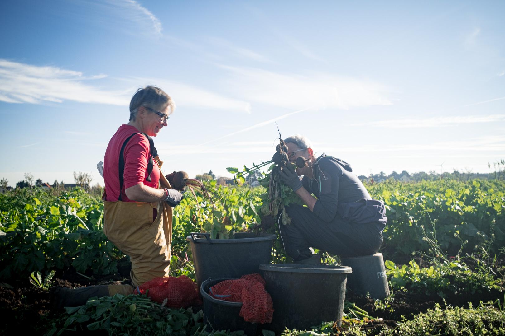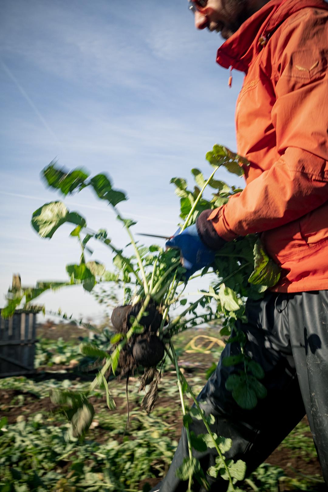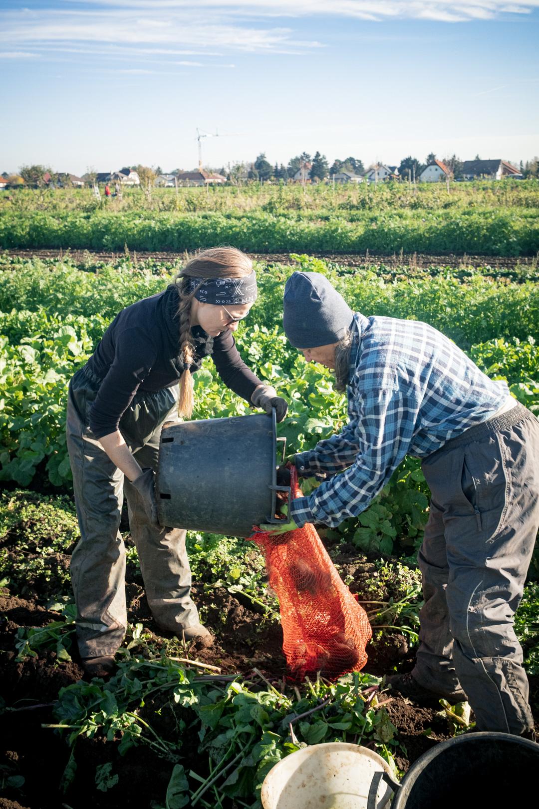 Es war wunderbar, sonniges Wetter. Für Gänserndorf ganz ungewöhnlich war’s auch noch windstill. Die ca. 20 Leute, die zum mithelfen gekommen waren konnten so einen super feinen letzten Tag am Feld bei der Rettichernte verbringen. Zu Mittag hat uns Lilli mit einer Kürbisquiche verwöhnt und am Nachmittag wurde bei der Kohlrabiernte noch über die riesigen Exemplare gestaunt. Alles in allem ein super feiner Samstag. Danke an Soren, dass du uns gut durch den Tag geleitet hast und an euch alle, die dabei waren fürs so super gemeinsam ernten. Schön wars!