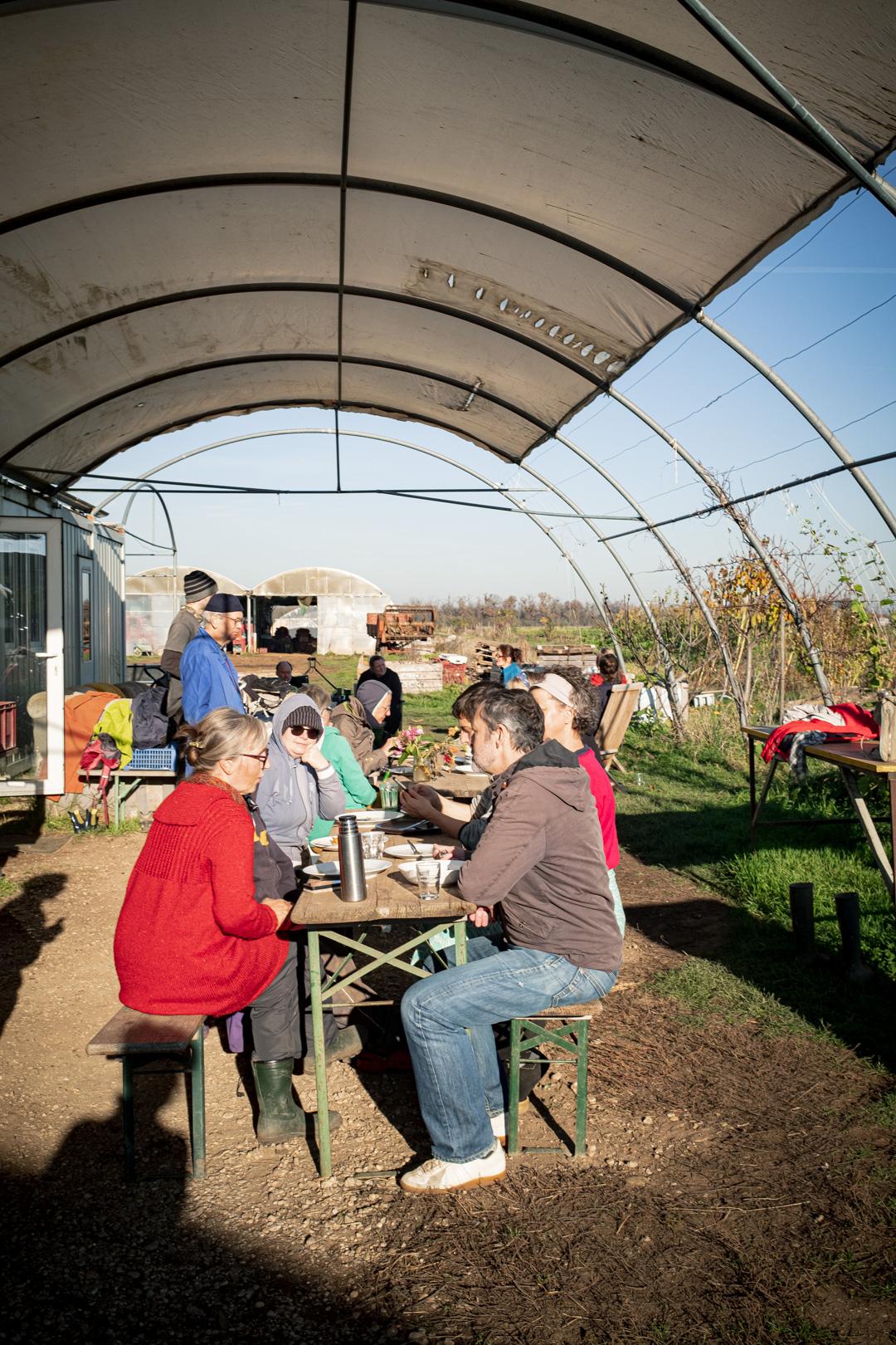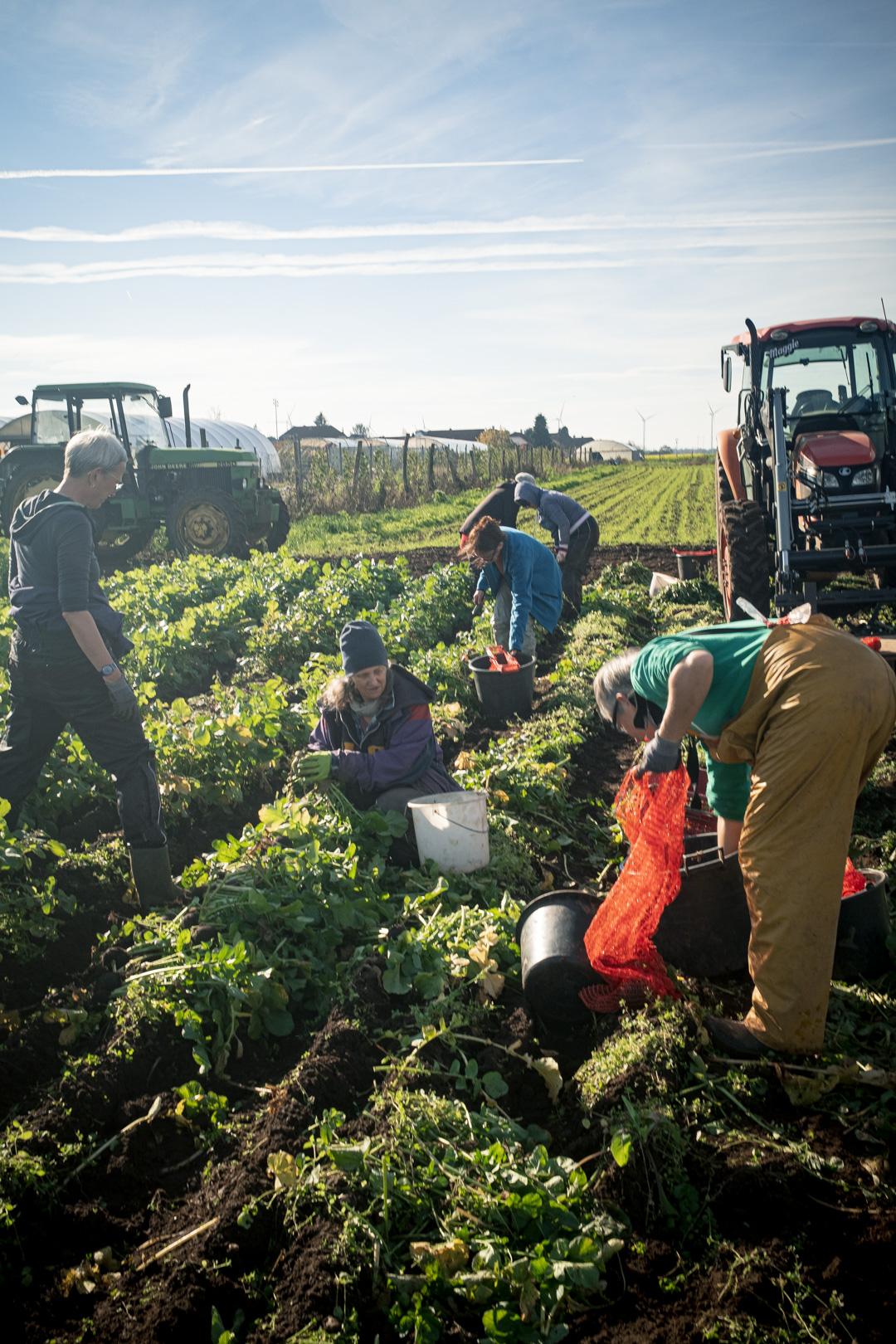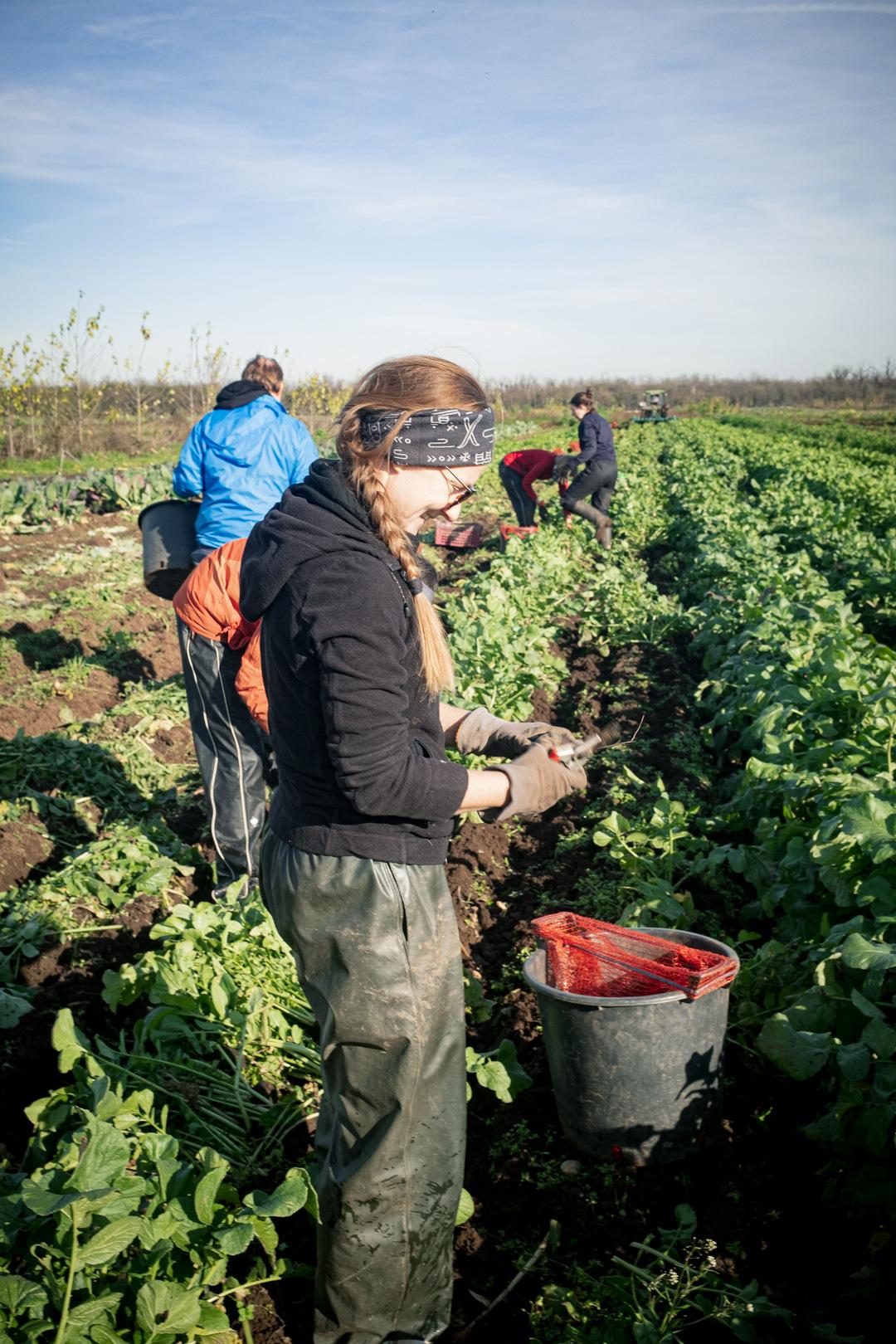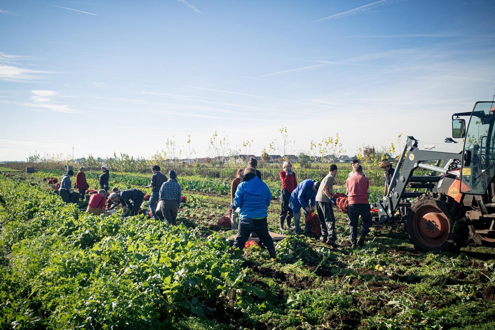 Es war wunderbar, sonniges Wetter. Für Gänserndorf ganz ungewöhnlich war’s auch noch windstill. Die ca. 20 Leute, die zum mithelfen gekommen waren konnten so einen super feinen letzten Tag am Feld bei der Rettichernte verbringen. Zu Mittag hat uns Lilli mit einer Kürbisquiche verwöhnt und am Nachmittag wurde bei der Kohlrabiernte noch über die riesigen Exemplare gestaunt. Alles in allem ein super feiner Samstag. Danke an Soren, dass du uns gut durch den Tag geleitet hast und an euch alle, die dabei waren fürs so super gemeinsam ernten. Schön wars!