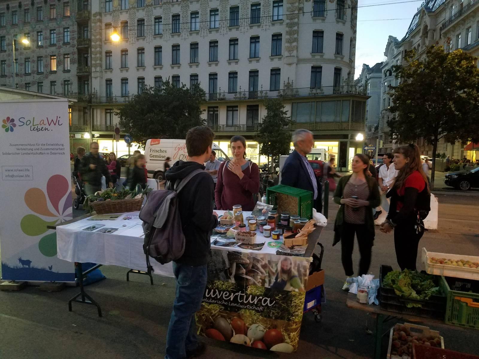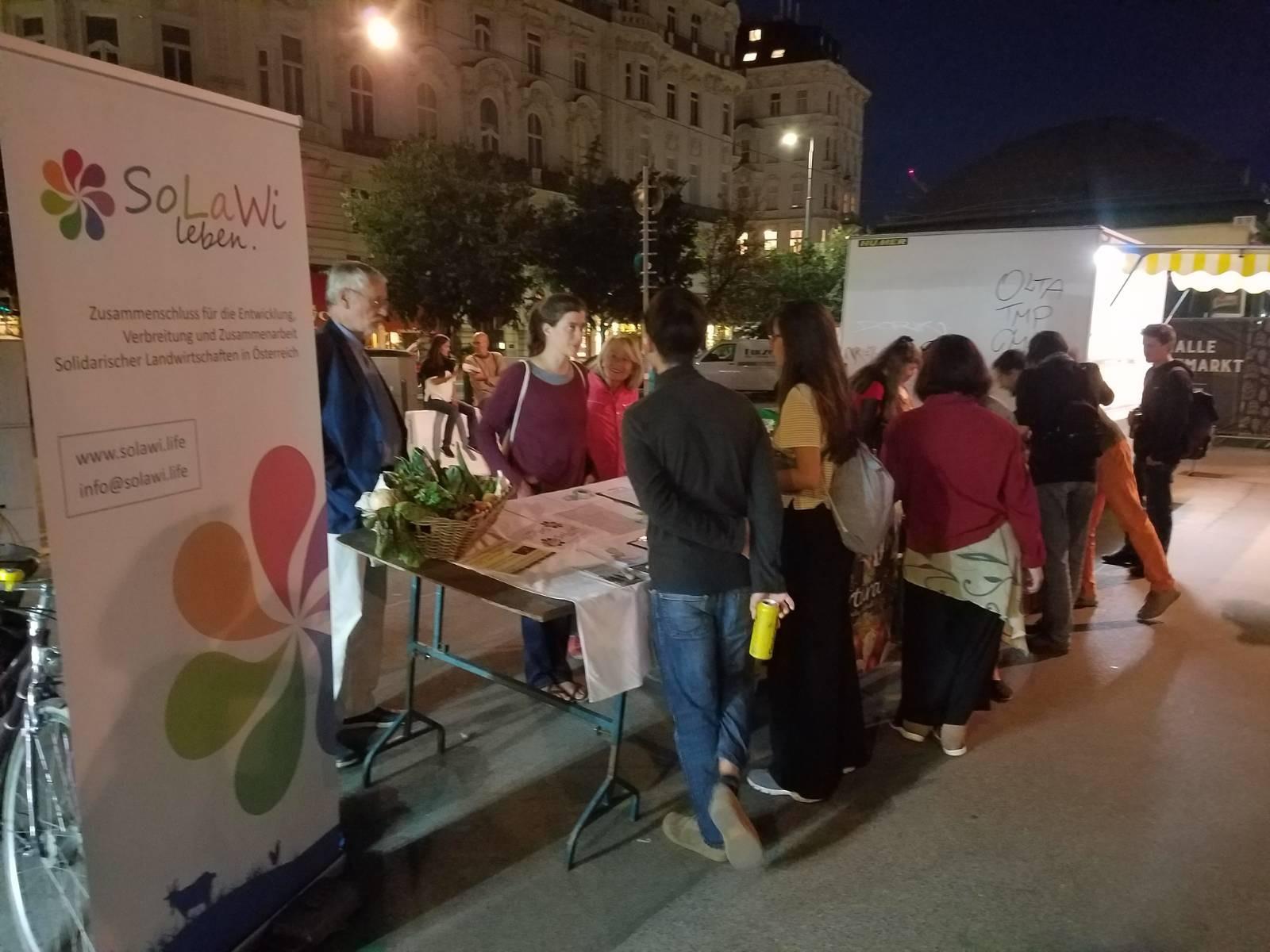 Am 2. September war in Wien die „Lange Nacht der Märkte“. Unser Stand am Naschmarkt war auch mit dabei. Es war sehr gemütlich gemeinsam mit Ouvertura und Solawi.leben den Stand zu machen und vor allem am Abend, als die Band gespielt hat, war dann einiges los. Eine gute Gelegenheit, solidarische Landwirtschaft bekannter zu machen auch einige Mitglieder sind vorbeigekommen und wir haben bei Bier und Langos geplaudert.