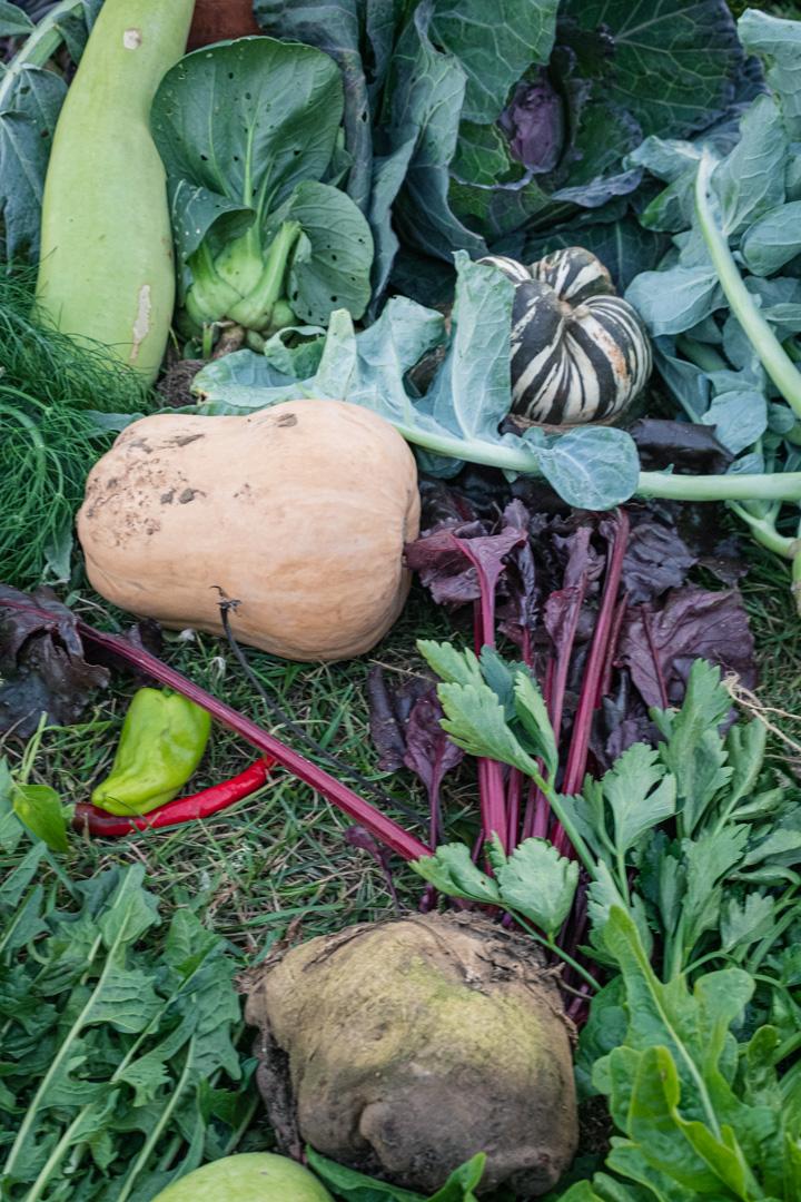 Aufstrichbroten und Herbstgemüse-Eintopf
