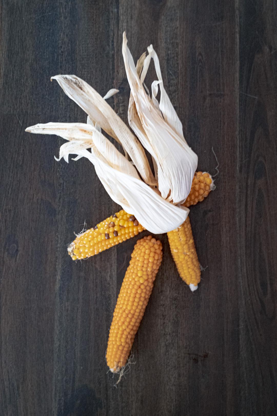 Letzterer ist eine auch als Puffmais bekannte spezielle Maissorte (Zea mays subsp. maysconvar. microsperma). Puffmais hat eine sehr dünne, harte und etwas glasige Schale und es gibt ihn in vielen verschiedenen Farben, manches mal sogar an einem einzelnen Kolben. Nach der Zubereitung sind sie aber alle weiß.
