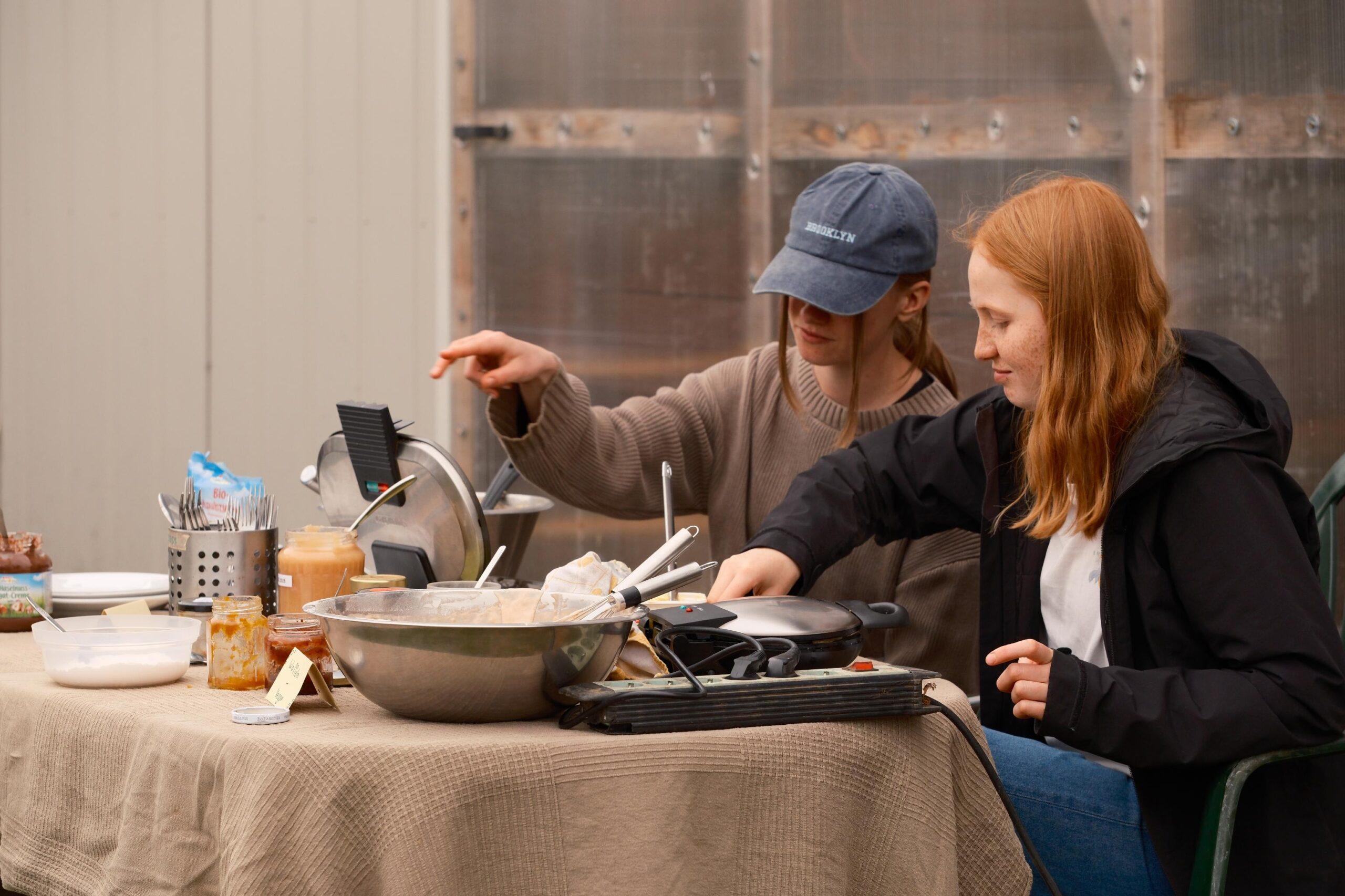 Zuletzt das Erntedankfest, wo wir den Waffelstand gemacht haben. Es waren viele nette und gesprächige Leute dort. Auf dem Fest gab es ein durchgehend geöffnetes Buffet, darauf folgte das Gemüse-Mandala, dann eine Hoftour mit Hannah. Es gab Aktivitäten wie Bauerngolf, Schnitzeljagd oder Waffeln essen. Am Abend gab es ein Lagerfeuer und die Siegerehrung vom Bauerngolf.